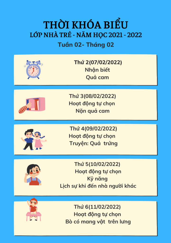 Thời khóa biểu Khối nhà trẻ (24-36 tháng)