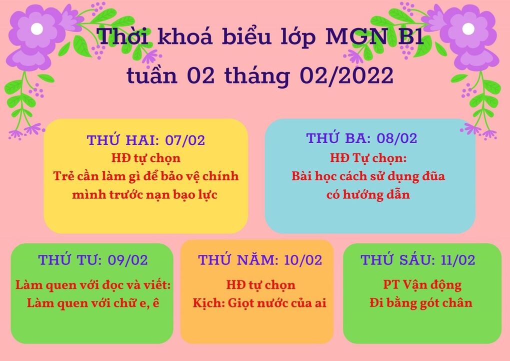 Thời khóa biểu Khối MG Nhỡ