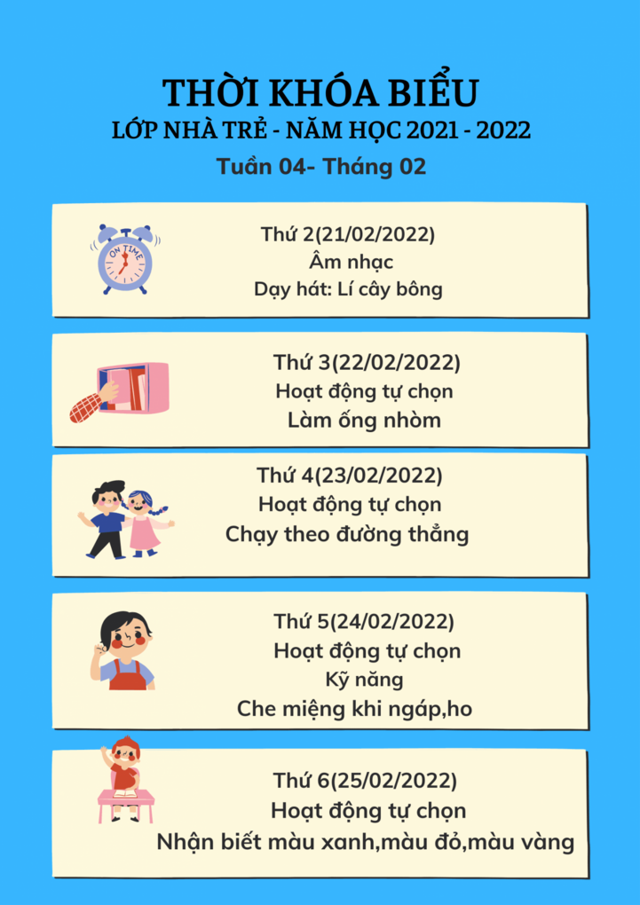 Thời khóa biểu khối nhà trẻ (24-36 tháng)