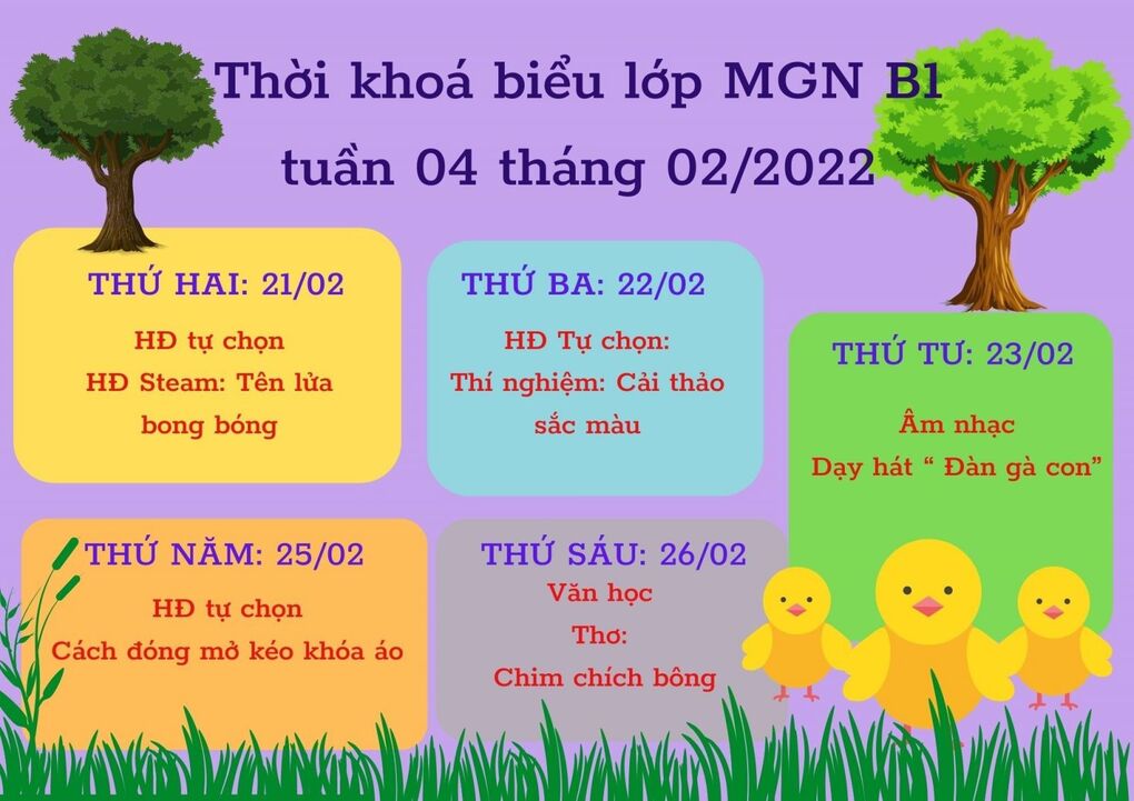 Kế hoạch kết nối giữa giáo viên với phụ huynh và học sinh khối Mẫu giáo Nhỡ tuần 04 tháng 02/2022 (Từ 21/02 - 25/02)