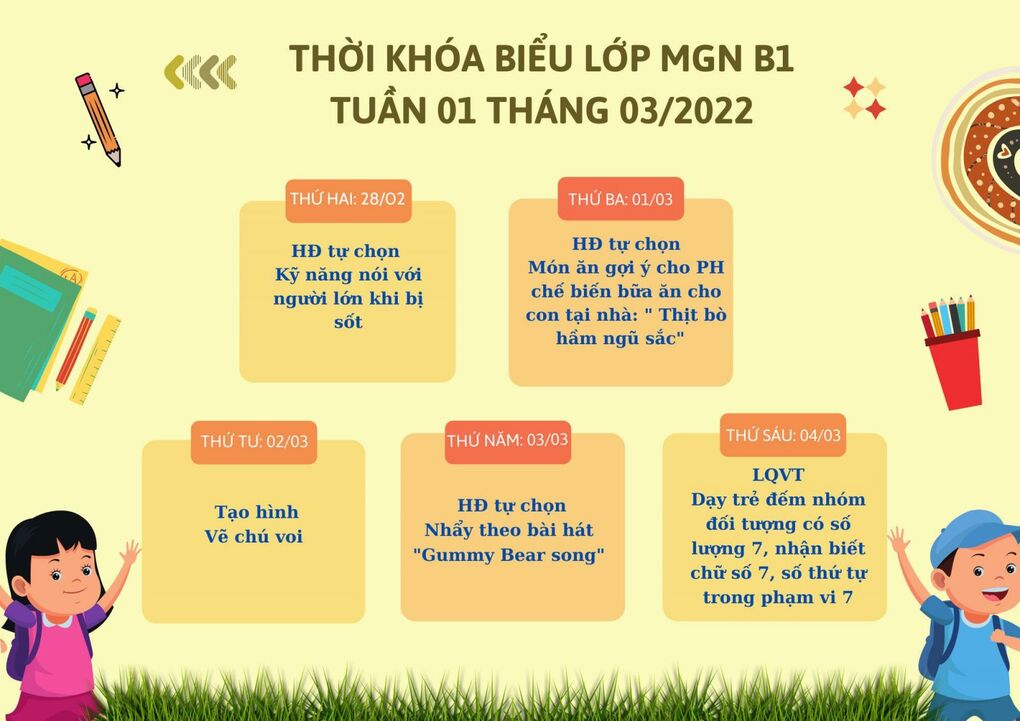 Thời khóa biểu khối mẫu giáo Nhỡ