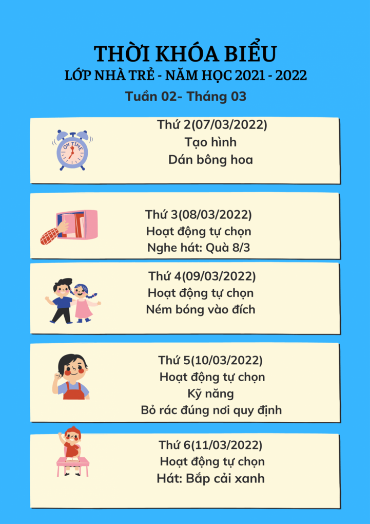 Thời khóa biểu khối Nhà trẻ