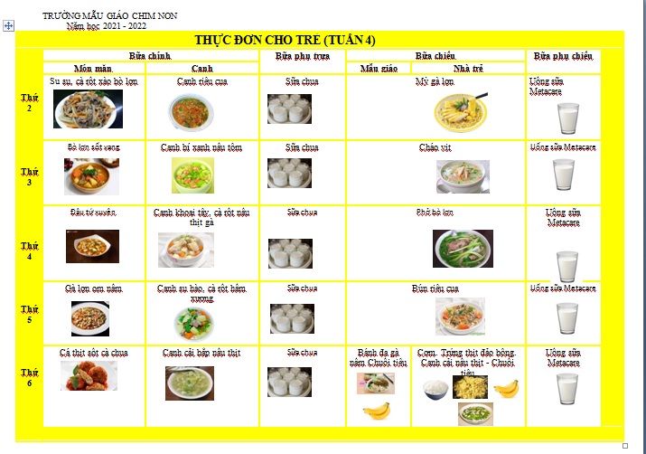 Trong bối cảnh dịch bệnh Covid-19, các con học sinh vẫn phải nghỉ dịch ở nhà. Công tác chăm sóc sức khỏe trẻ được đưa lên hàng đầu. Ngoài việc phòng dịch tốt, cha mẹ và những người thân quanh bé cần cung cấp cho trẻ những bữa ăn ngon, hợp khẩu vị, đảm bảo đủ chất dinh dưỡng cần thiết cho sự phát triển của trẻ. Trường Mẫu giáo Chim Non xin gửi tới quý vị phụ huynh thực đơn gợi ý để bố mẹ, người thân chế biến cho trẻ những bữa ăn đa dạng phong phú.
