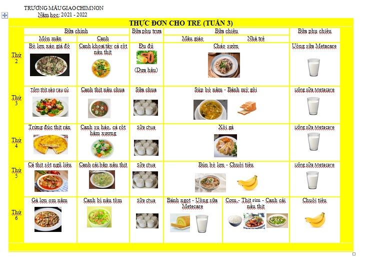 Trong bối cảnh dịch bệnh Covid-19, các con học sinh vẫn phải nghỉ dịch ở nhà. Công tác chăm sóc sức khỏe trẻ được đưa lên hàng đầu. Ngoài việc phòng dịch tốt, cha mẹ và những người thân quanh bé cần cung cấp cho trẻ những bữa ăn ngon, hợp khẩu vị, đảm bảo đủ chất dinh dưỡng cần thiết cho sự phát triển của trẻ. Trường Mẫu giáo Chim Non xin gửi tới quý vị phụ huynh thực đơn gợi ý để bố mẹ, người thân chế biến cho trẻ những bữa ăn đa dạng phong phú.