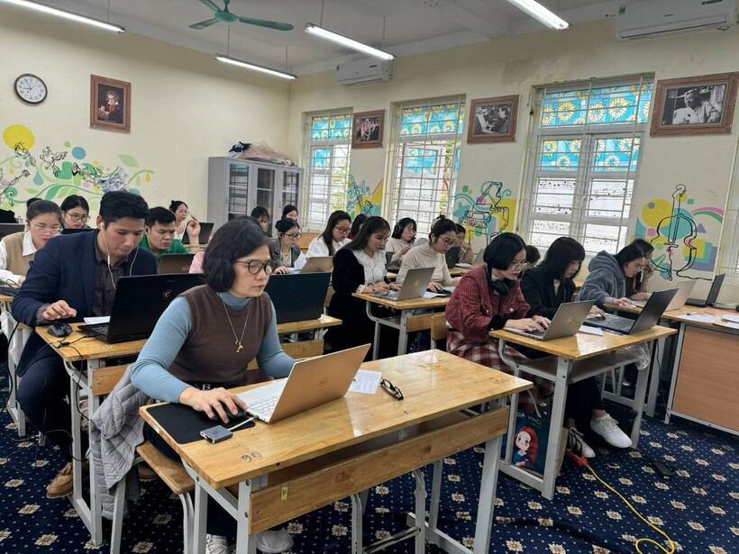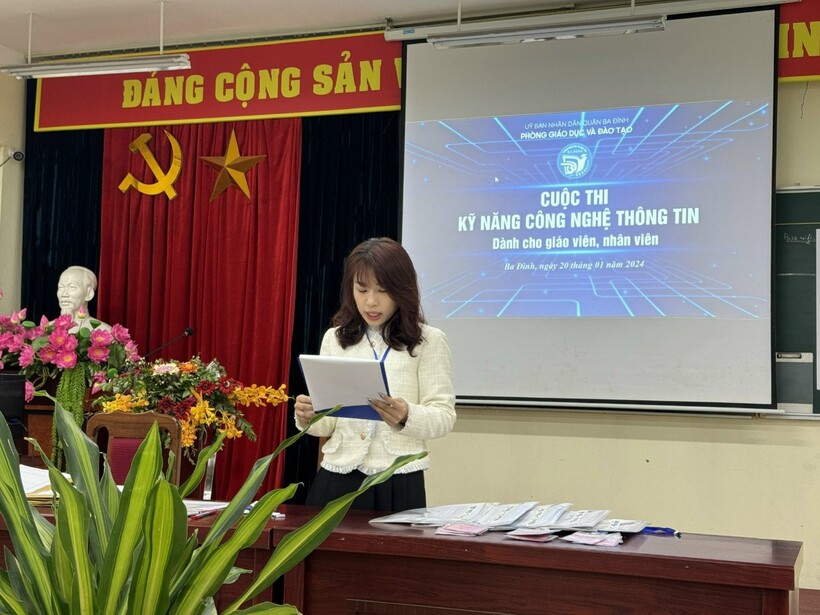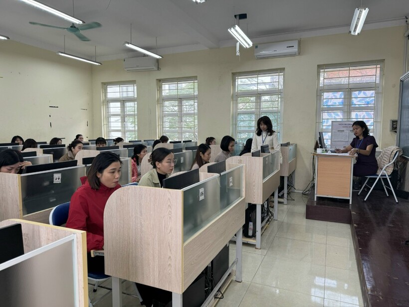 Giáo viên của nhà trường nghiêm túc tham gia thi kỹ năng công nghệ thông tin
