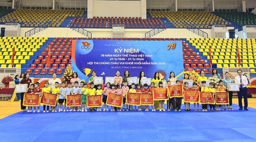 Sáng nay, đại diện giáo viên và học sinh lớp mẫu giáo lớn A1 đã tham dự lễ kỷ niệm ngày truyền thống ngành thể dục thể thao Việt Nam và lễ trao giải Hội thi chúng cháu vui khỏe khối mầm non Quận Ba Đình năm 2024.