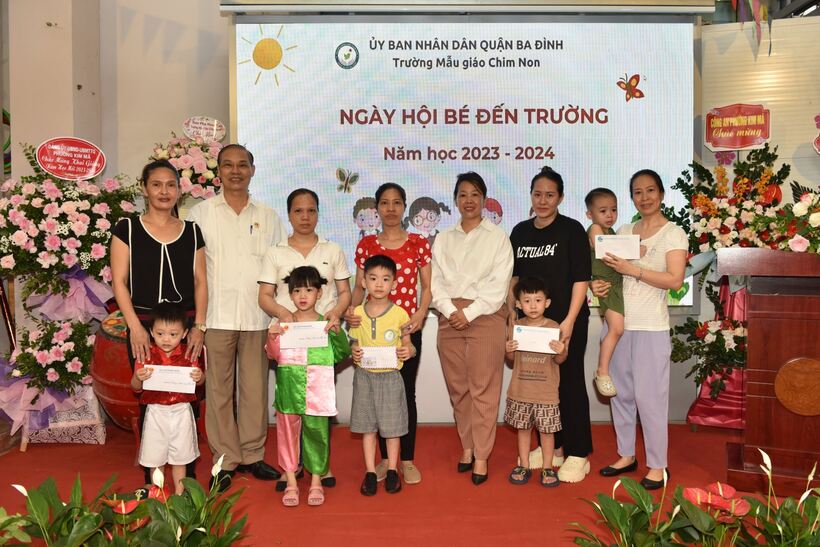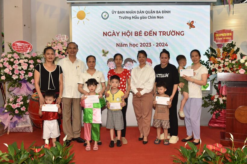 Nhân dịp KG, các đoàn thể chính trị Phường Kim Mã cũng dành tặng 5 cháu có hoàn cảnh khó khăn của trường 5 suất quà.
