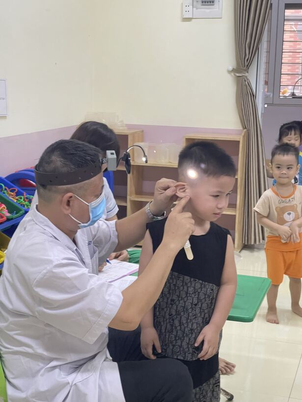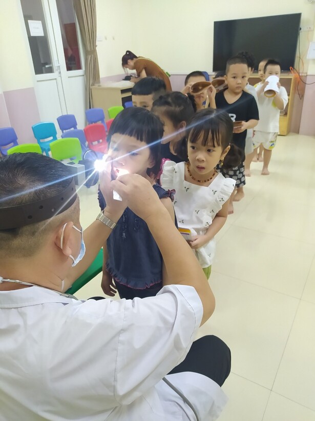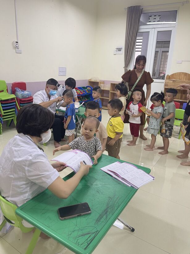 Một số hình ảnh trong buổi khám sức khỏe sáng nay tại trường Mẫu giáo Chim Non: