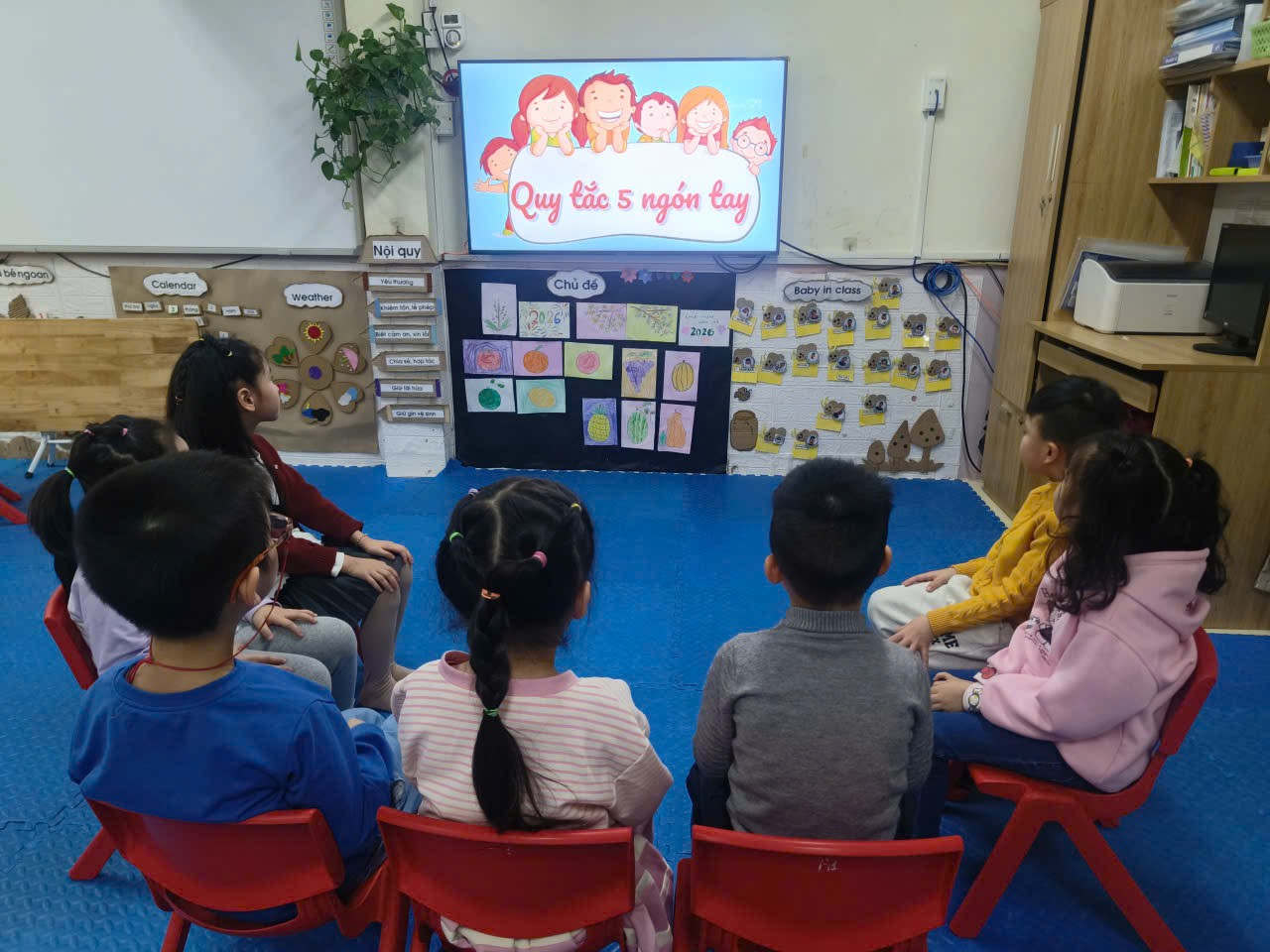 "Để bảo vệ cơ thể quý giá, các bé lớp A2 hãy ghi nhớ Quy tắc 5 ngón tay xinh xắn: