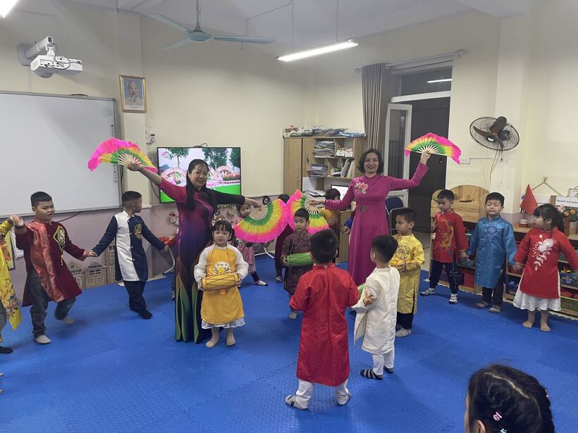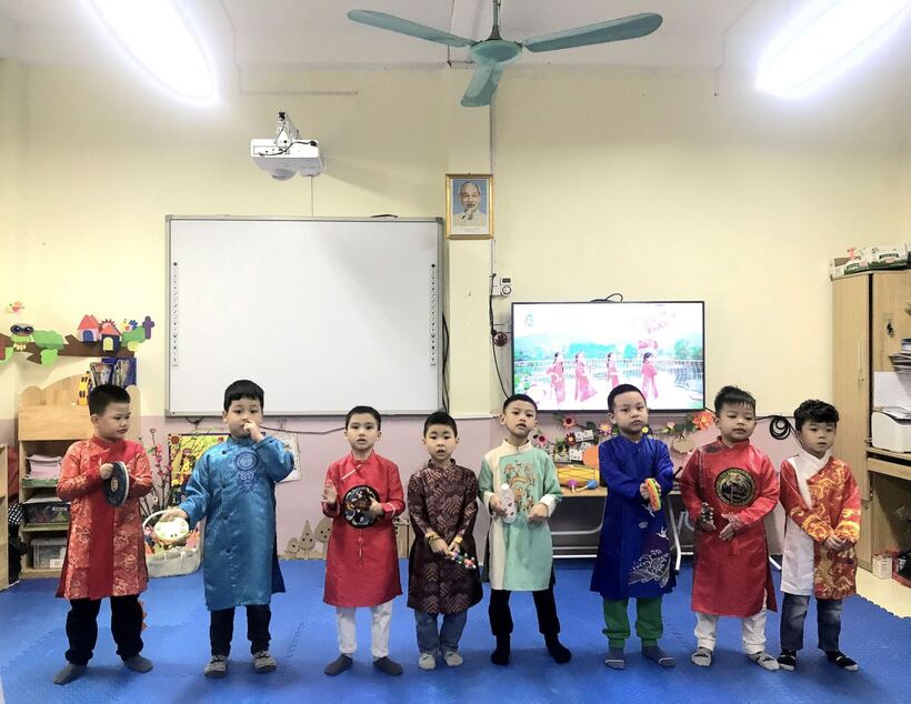 Thông qua các bài hát ca ngợi tình yêu quê hương đất nước, những câu dân ca, dụng cụ âm nhạc truyền thống, được diện bộ trang phục dân tộc yêu thích, các bé cảm thấy vui vẻ hào hứng thêm mến yêu lớp A1, yêu bạn bè, yêu cô giáo của mình hơn. Những buổi biểu diễn văn nghệ tại lớp cùng cô và các bạn đã giúp trẻ lan tỏa, sẻ chia, bày tỏ tình cảm của mình với cô và các bạn. Cô giáo ThanhThường, Kim Oanh vẫn luôn là một phần yêu thương, kỷ niệm của con trong năm học cuối cấp này .