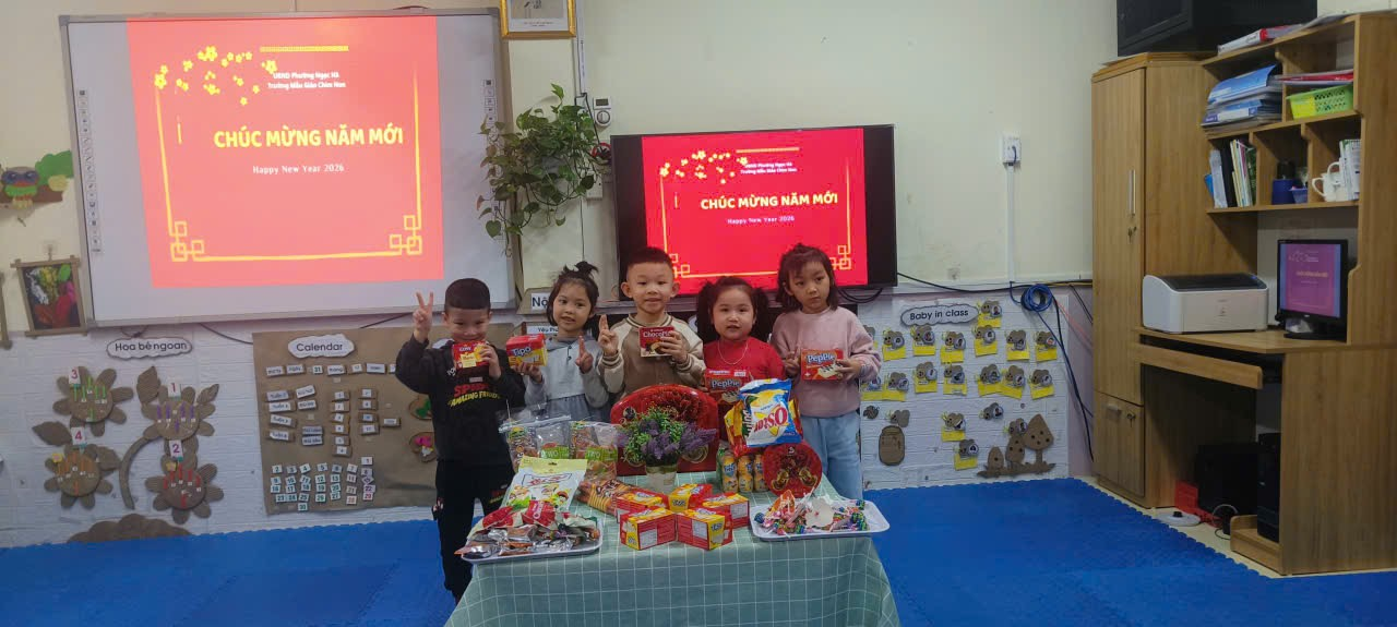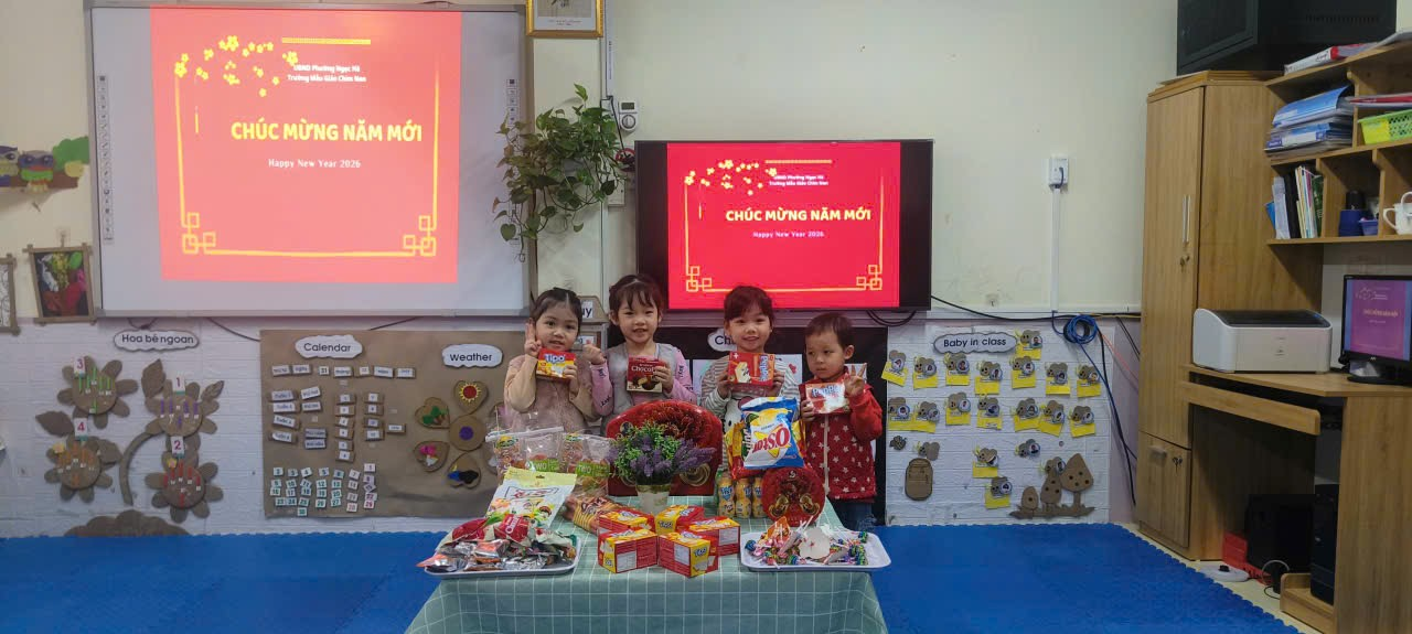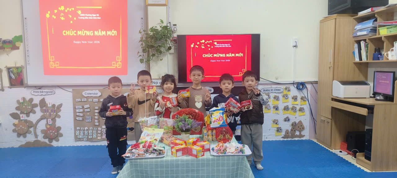 Trong không khí rộn ràng của những ngày cuối năm, các bạn nhỏ lớp Mẫu giáo lớn A2 đã có một buổi liên hoan chào đón Tết Dương lịch 2026 thật ấm áp và tràn đầy tiếng cười. Dưới bàn tay trang trí khéo léo của cô và trò, lớp học như khoác lên mình chiếc áo mới rực rỡ với sắc hoa mai, hoa đào và những chùm bóng bay đủ màu sắc.