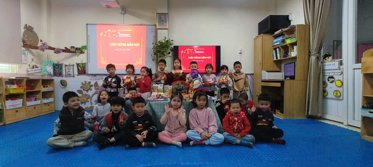 Những gương mặt ngây thơ, ánh mắt lấp lánh niềm vui khi các con cùng nhau biểu diễn các tiết mục văn nghệ sôi động, tự tin sải bước như những "nghệ sĩ nhí" trên sân khấu nhỏ. Không chỉ được thưởng thức những món quà bánh ngọt ngào, đây còn là dịp để các bạn nhỏ A2 cùng nhau nhìn lại một năm vừa qua, trao cho nhau những cái ôm thân thiết và những lời chúc năm mới "hay ăn chóng lớn". Buổi liên hoan không chỉ là một bữa tiệc đơn thuần, mà còn là mảnh ghép kỷ niệm tuyệt đẹp của tuổi thơ, giúp tình bạn của các con thêm gắn kết dưới mái trường mầm non thân yêu.