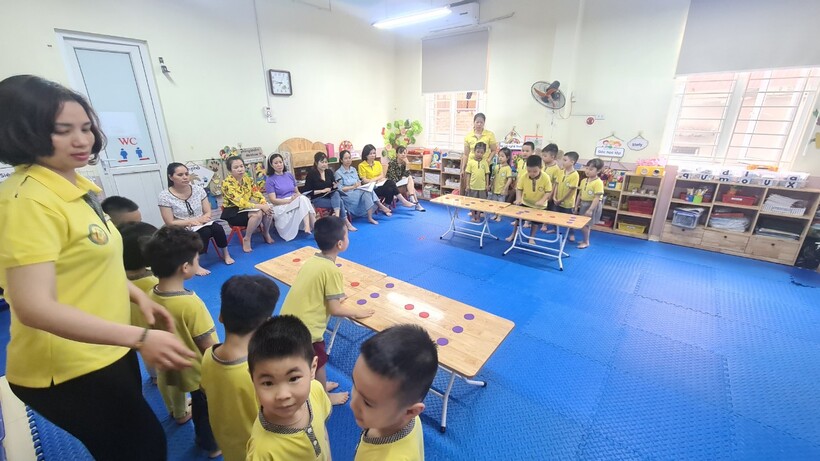 Thông qua bài vận động hôm nay, trẻ có kỹ năng, vỗ, nhảy bật theo nhịp, phát triển tai nghe tiết tâú, giai điệu, phát triển kỹ năng tư duy sắp xếp theo quy tắc, làm việc nhóm...Hoạt động học bằng chơi, chơi mà học giúp các bạn lớp A1 năng động, tự tin, khỏe mạnh hơn hàng ngày.