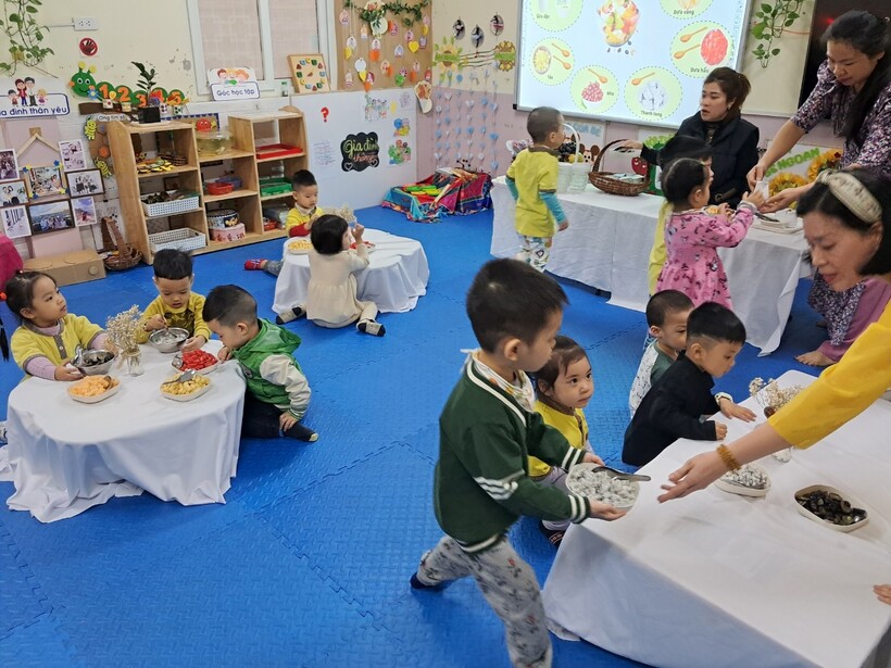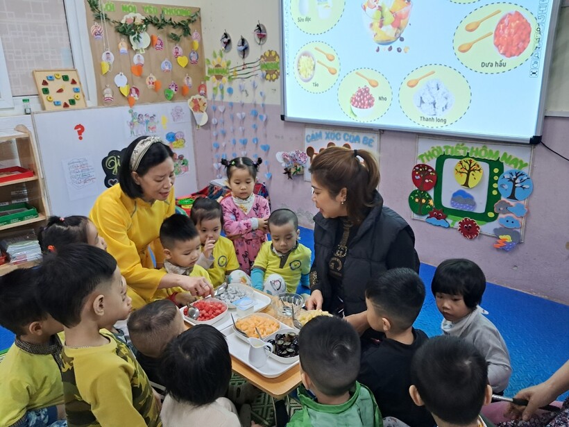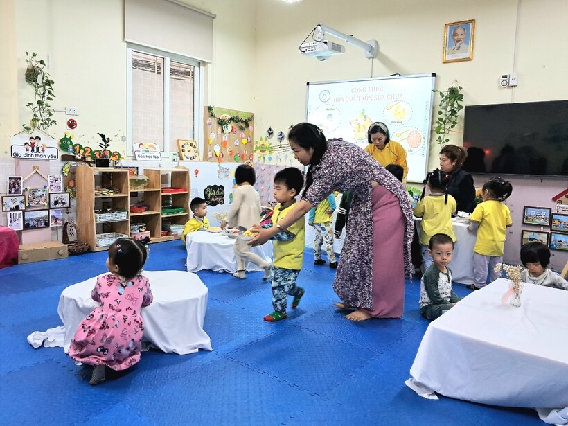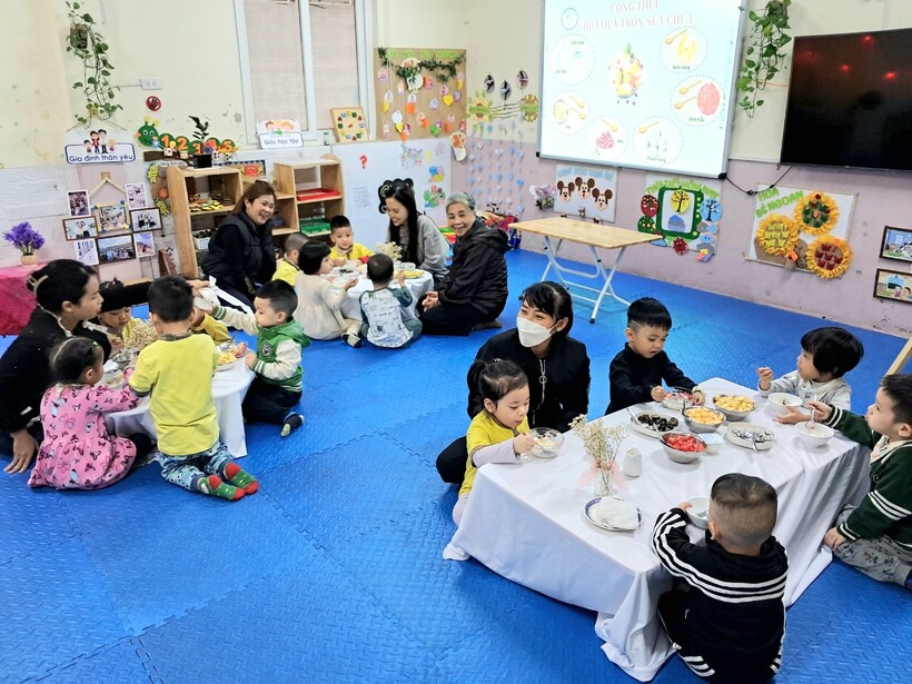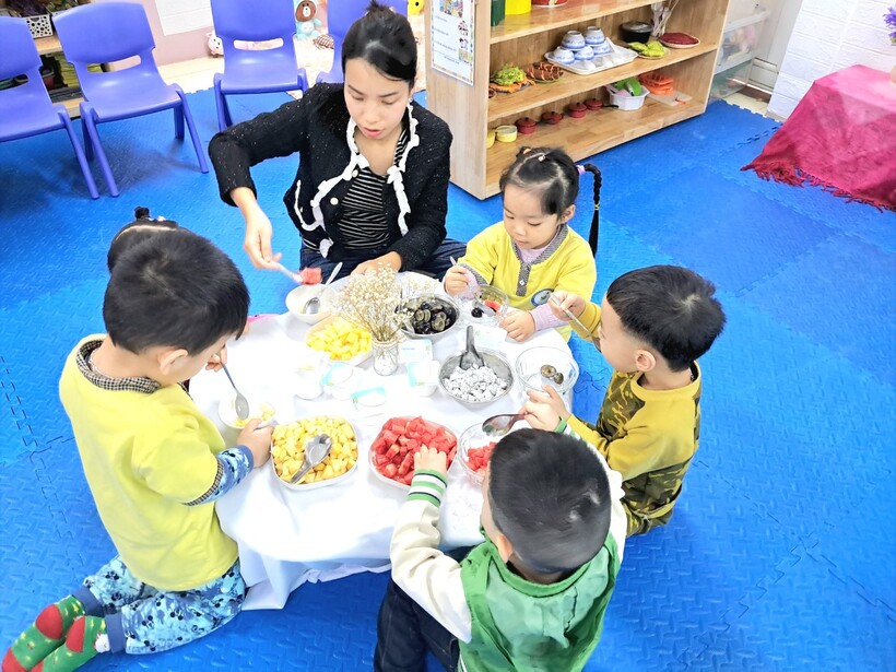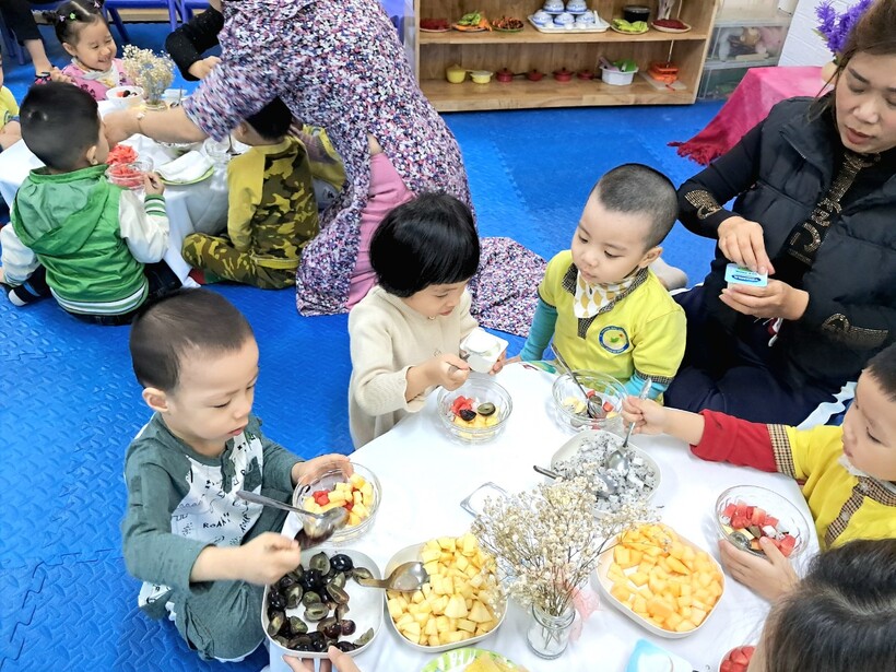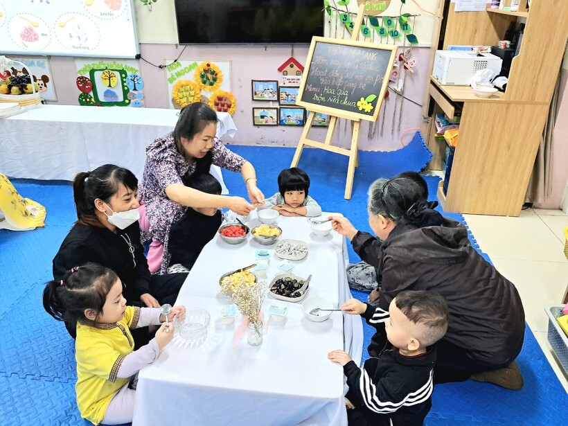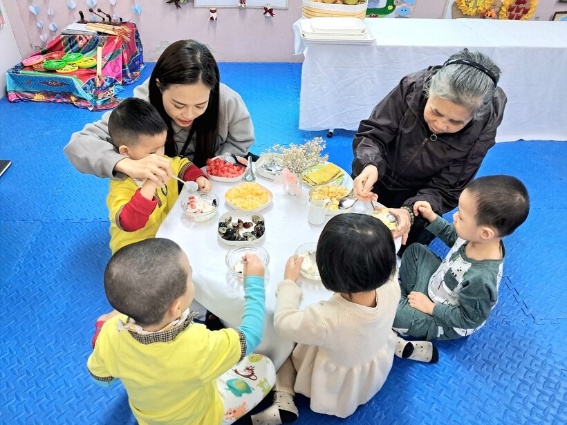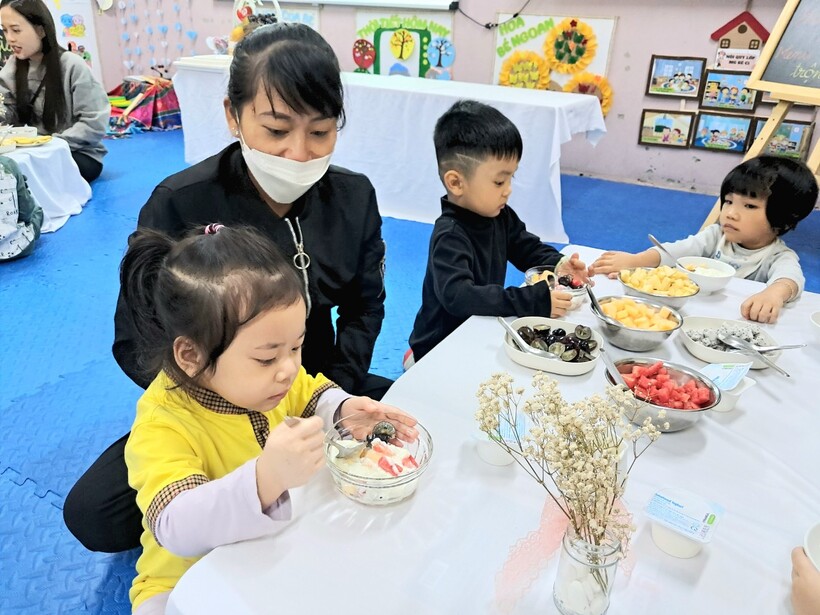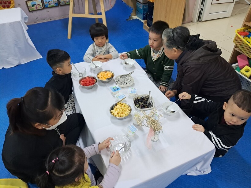 Sữa chua hoa quả là món ăn ưa thích của cả trẻ em và người lớn. Hôm nay 14/11, mẹ bạn Anh Minh - chủ Thương hiệu "Bếp cô Zin" đã đãi các bạn nhỏ lớp mẫu giáo bé C1 một bữa no nê. Buổi hoạt động giúp bạn Tiến Ân có trải nghiệm mới là làm chung món hoa quả trộn sữa chua cùng người bà của mình.