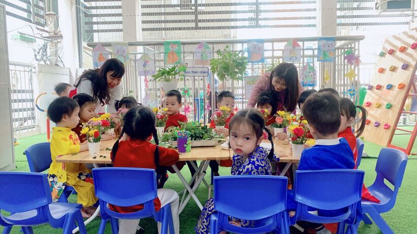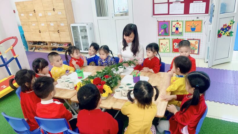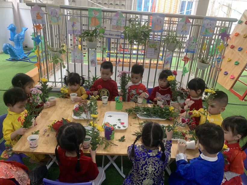 Tháng Ba, tạm biệt những ngày dài lạnh giá của mùa đông. Ngước mắt lên nhìn bầu trời trong veo, ta bỗng cảm ,nhận được mùa xuân ùa về… Đến lớp Mẫu giáo bé C2 trường Mẫu giáo Chim Non, các bạn nhỏ không chỉ cảm nhận được thời tiết tháng 3 nhẹ nhàng, bình yên mà không khí còn được hâm nóng bởi "Lễ hội áo dài", nhộn nhịp, tươi vui với những hoạt động trải nghiệm bổ ích chào mừng ngày Quốc Tế phụ nữ 8/3. Những bàn tay xinh xinh đang chăm chú, vụng về cắm những bông hoa nhỏ tươi tắn, những ánh mắt háo hức đang chờ đón những món quà nhỏ mang về tặng bà, tặng mẹ...