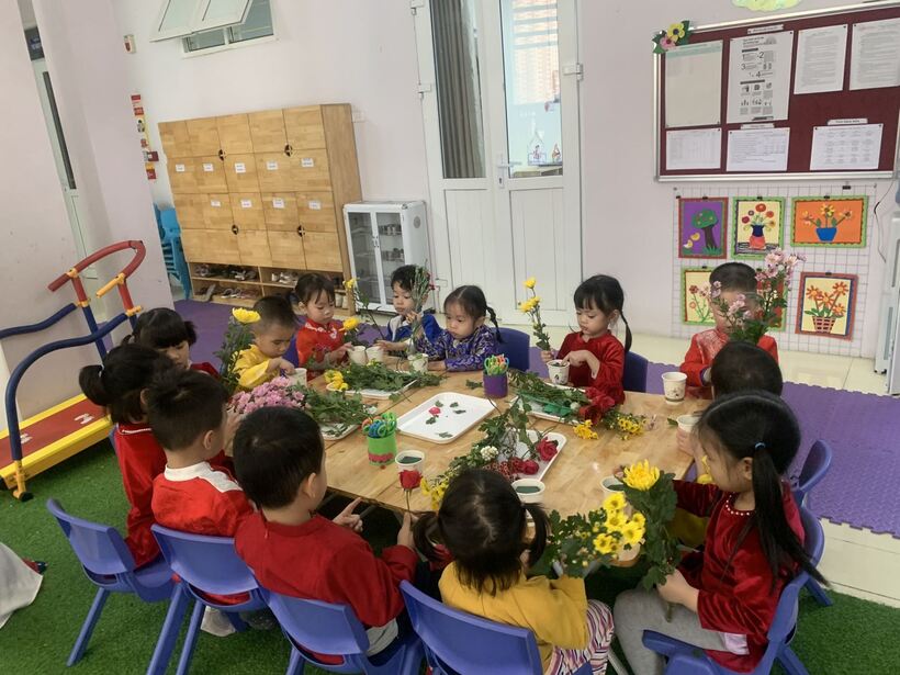 Hôm nay lớp cô trò lớp MG Bé C2 khi tham gia hoạt động ngoài trời đã có 1 hoạt động trải nghiệm thú vị. Đó là hoạt động: “Cắm hoa tặng bà, mẹ, cô giáo và các bạn gái nhân ngày 8/3”. Hoạt động ý nghĩa này giúp các con biết trân trọng, yêu thương những người phụ nữ xung quanh. Tất cả những bông hoa ấy chính là tâm tư của các con thay cho lời chúc những điều tốt đẹp nhất đến một nửa xinh đẹp của thế giới. Hy vọng những món quà nhỏ của các con đã mang đến niềm hạnh phúc, sự ấm áp và một ngày tràn đầy tiếng cười cho những người phụ nữ mà các con yêu thương