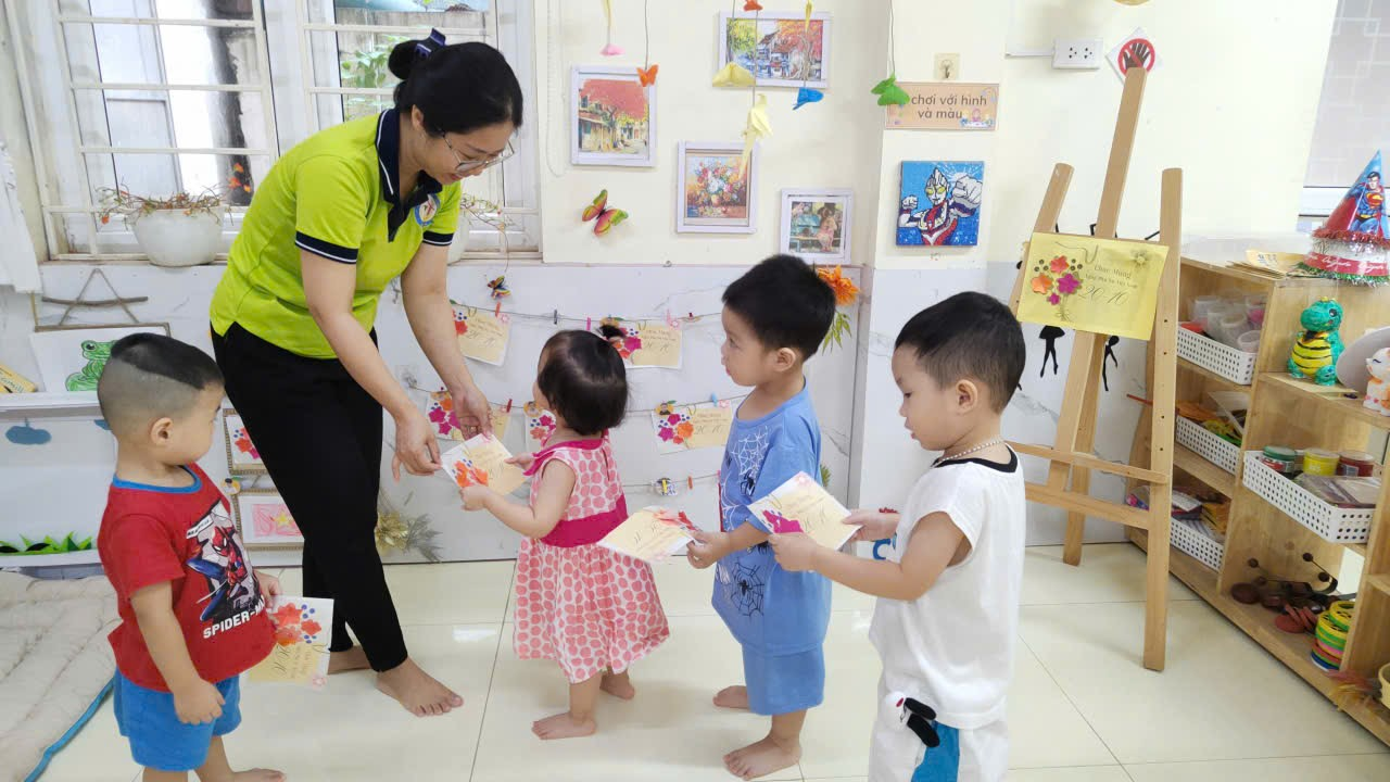Hưởng ứng Ngày Phụ nữ Việt Nam 20/10, các bạn nhỏ lớp nhà trẻ D trường mẫu giáo Chim Non đã có hoạt động “Làm thiệp tặng mẹ yêu” với niềm háo hức và tình cảm chân thành.