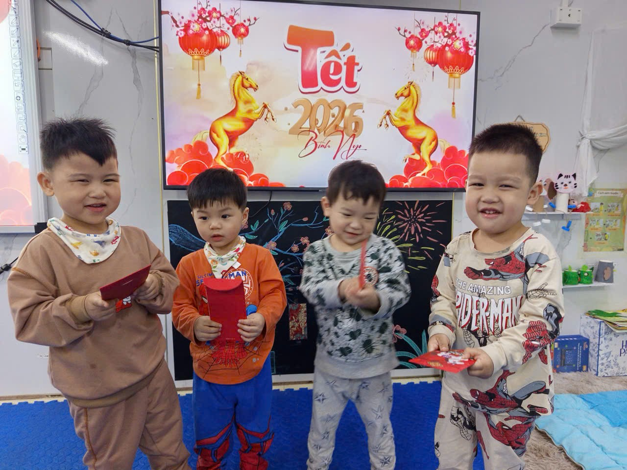 Với những ý nghĩa đó ngày hôm nay lớp nhà trẻ D trường mẫu giáo Chim Non đã gửi những phong bao lì xì đến các con với mong muốn các con được mạnh khỏe, bình an. Sau đây là một số hình ảnh của các con