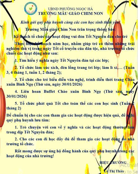 Xuân mới đã đến gần trong không khí phấn khởi, vui mừng của thành công Đại hội Đảng Cộng sản Việt Nam lần thứ XIV, trường Mẫu giáo Chim Non tổ chức nhiều hoạt động ý nghĩa gắn với kỷ niệm Ngày thành lập Đảng Cộng sản Việt Nam, chào năm mới Bính Ngọ - 2026.