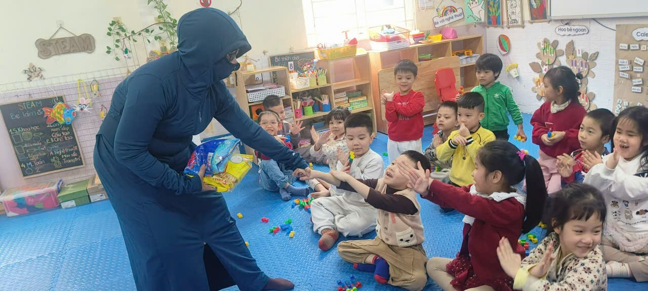 Tại lớp Mẫu giáo lớn A2 trường Mẫu giáo Chim Non, kỹ năng phòng chống bắt cóc là bài học sinh tồn được các cô giáo lồng ghép khéo léo qua các tình huống giả định thực tế. Trẻ được rèn luyện quy tắc '3 KHÔNG' cốt lõi: Không nhận quà hay đồ chơi từ người lạ; Không đi theo người lạ dù họ nhờ giúp đỡ hay rủ đi chơi; và Không lên xe người lạ. Đặc biệt, các cô chú trọng dạy trẻ phản xạ thoát hiểm: trong tình huống nguy cấp bị người lạ lôi kéo, con cần bình tĩnh nằm ra đất hoặc vùng vẫy, hét thật lớn: 'Cứu cháu với! Người này không phải bố mẹ cháu!' để thu hút sự chú ý và chạy nhanh về phía các chú bảo vệ hoặc nơi đông người."