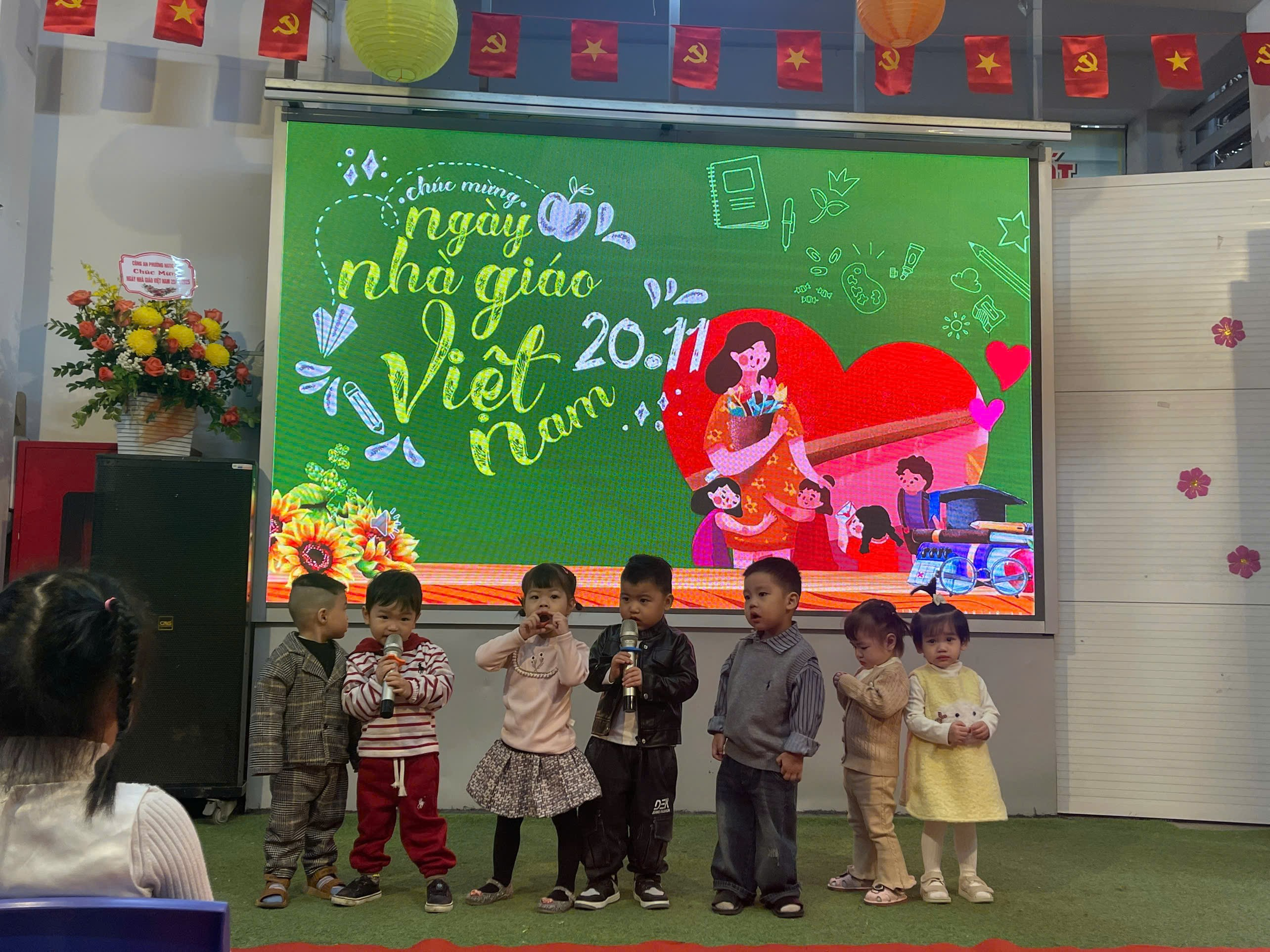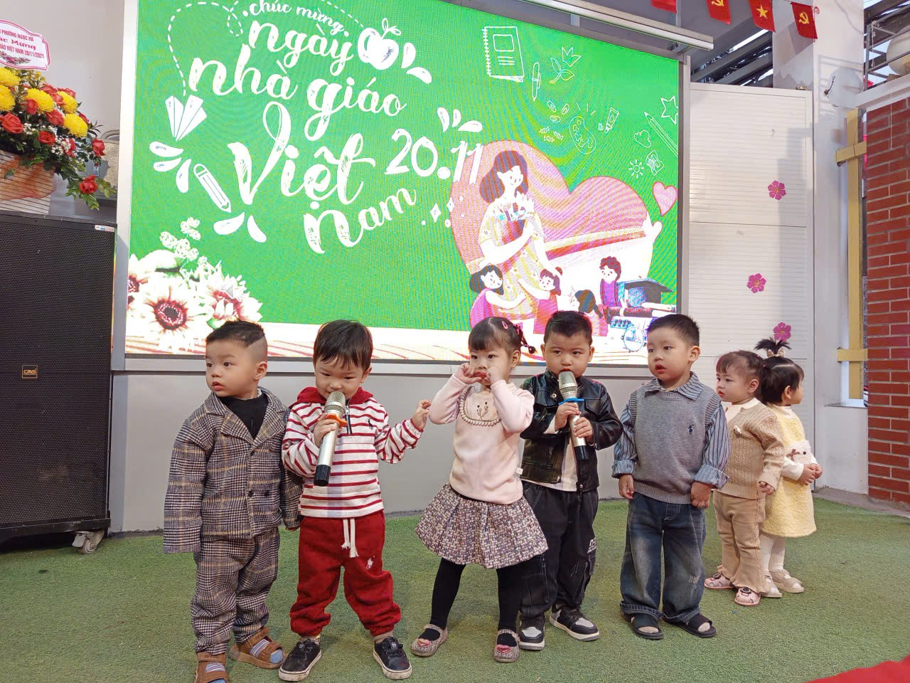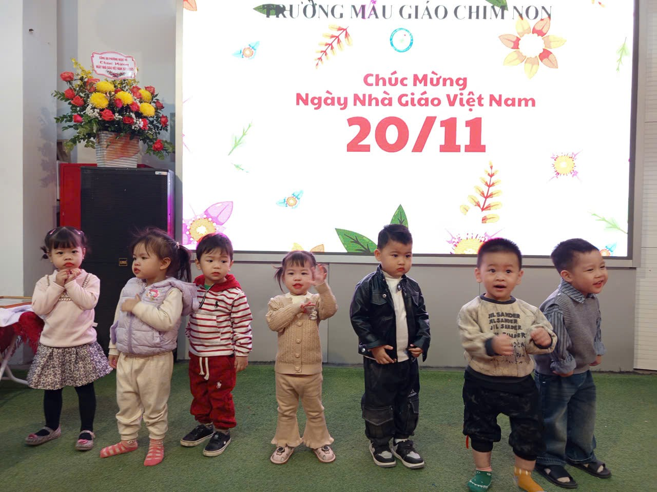 Sáng ngày 20/11, Trường Mẫu giáo Chim Non tổ chức buổi văn nghệ chào mừng ngày Nhà giáo Việt Nam 20/11. Chương trình văn nghệ với sự tham gia của các lớp trong nhà trường. Lớp nhà trẻ D cũng đóng góp một tiết mục đọc thơ “Cô và Mẹ” Bài thơ mang ý nghĩa lớn lao trong cuộc sống của các con nơi nhà trường cũng như là mái nhà thứ hai của mình nơi các cô giáo như mẹ hiền của các con. Ngoài ra các con còn được các bác trong ban phụ huynh lớp tổ chức liên hoan. Sau đây là một số hình hoạt động của các con: