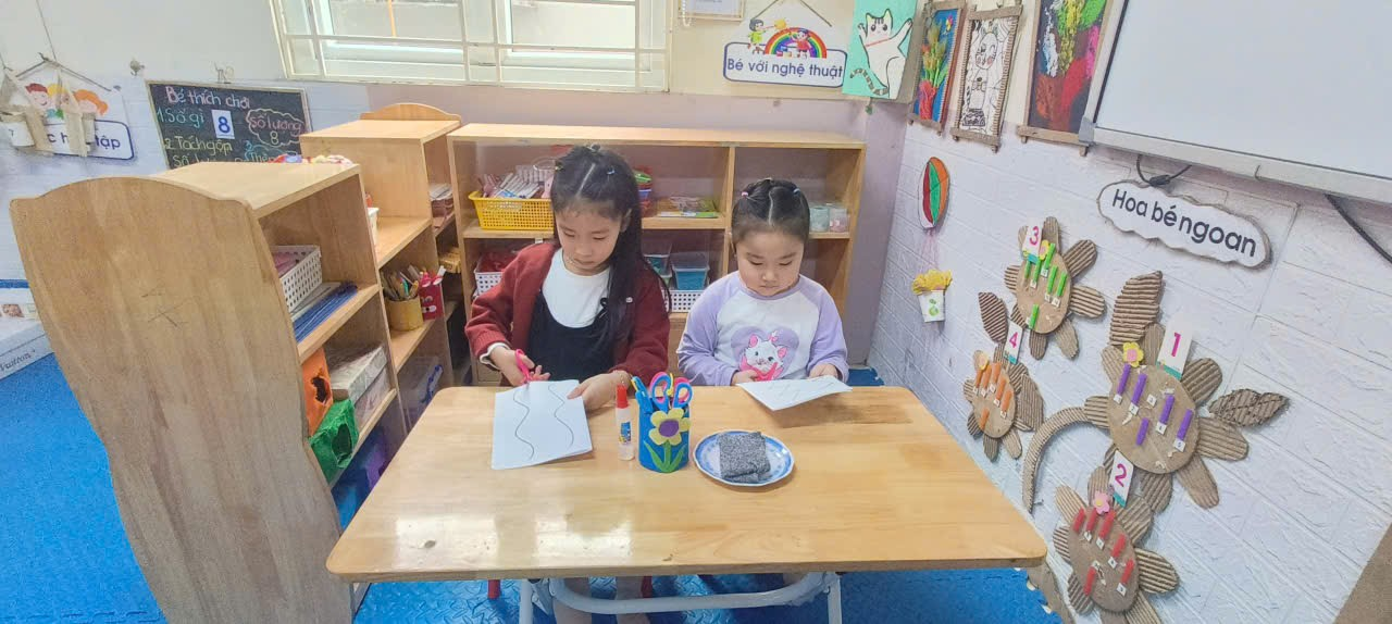Tại lớp Mẫu giáo lớn A2 trường Mẫu giáo Chim Non, dao và kéo không bị coi là những vật dụng 'cấm kỵ' đáng sợ, mà được các cô giới thiệu như những người bạn hỗ trợ đôi tay khéo léo của các con. Kỹ năng sử dụng dao kéo giúp trẻ phát triển vận động tinh, tăng cường sức mạnh cơ tay, tiền đề cho kỹ năng viết, rèn luyện phối hợp tay và mắt, phối hợp hai tay, tăng cường sự tập trung và kiên nhẫn, xây dựng sự tự tin và tính tự lập, giáo dục về An toàn thực tế.