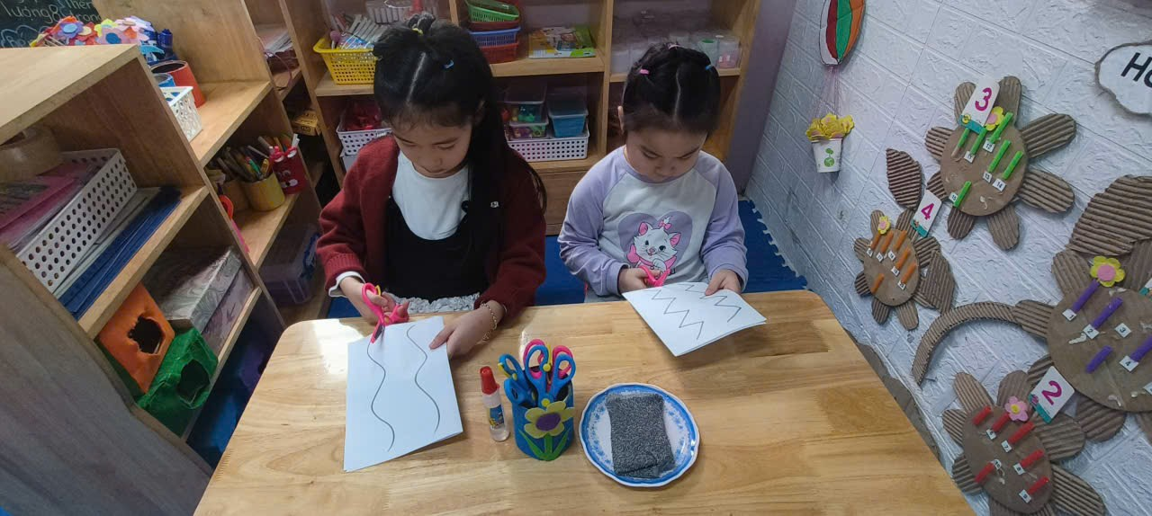 * Với kéo: Bắt đầu bằng việc cắt đất nặn (Playdough) -> Cắt ống hút -> Cắt giấy bìa cứng (dễ cầm hơn giấy mỏng) -> Cắt theo đường kẻ thẳng -> Cắt đường cong.
