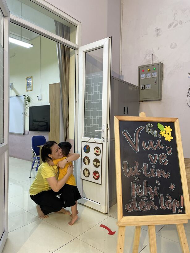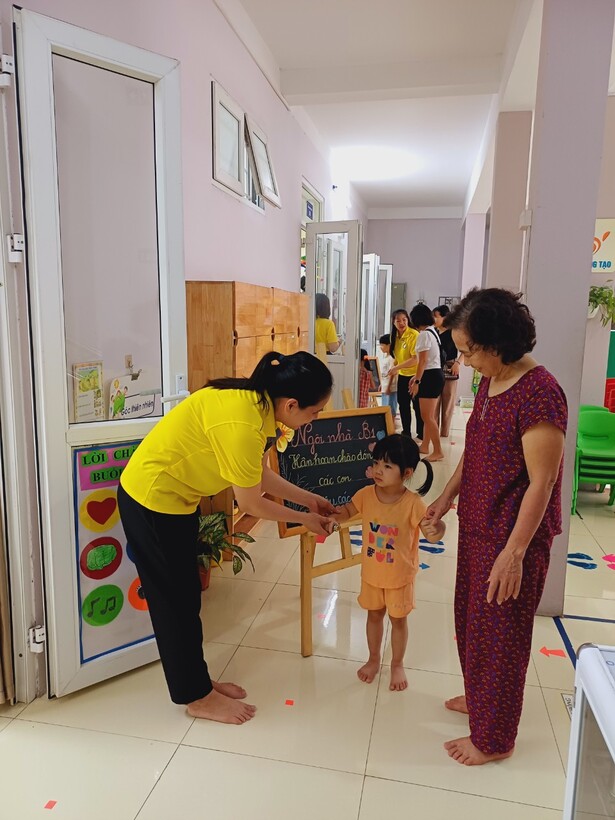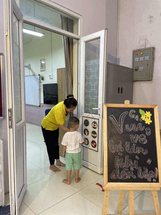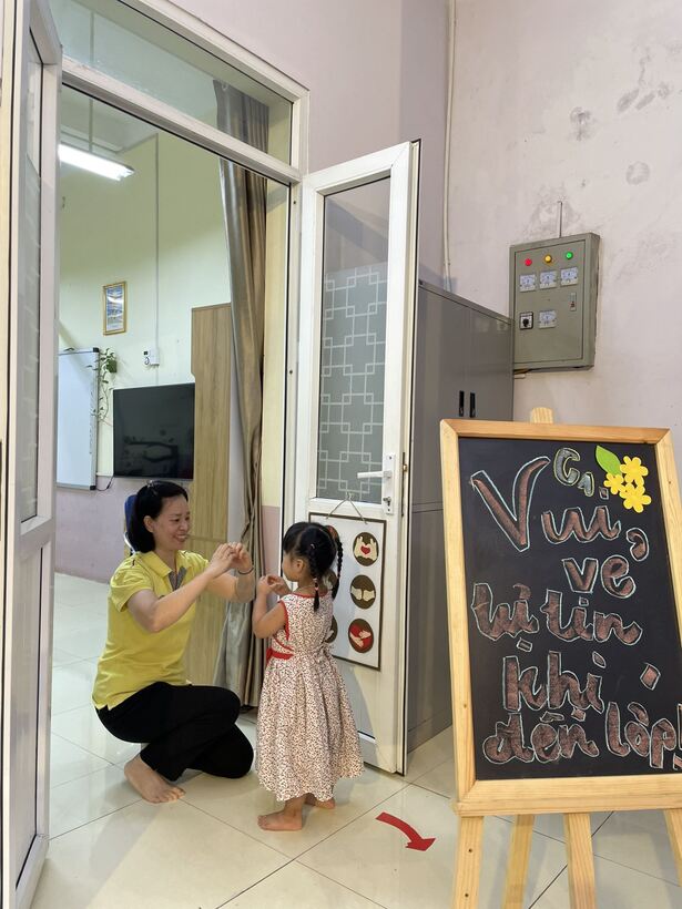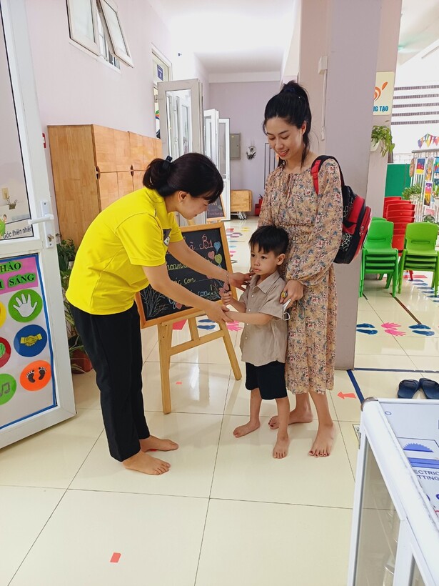 Một số bé còn đôi lúc “Mít ướt” thì đã kịp thời được các cô nhẹ nhàng an ủi giúp bé an tâm và đưa con vào vui chơi, khám phá. Các cô luôn quan tâm, hỏi han bé để bé vui thích, dần thân quen với môi trường mới.