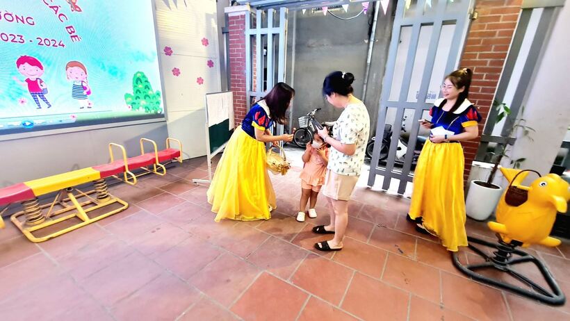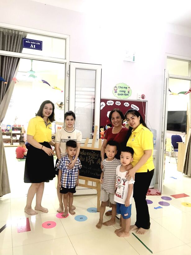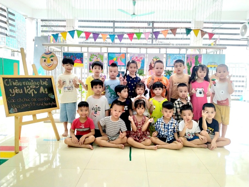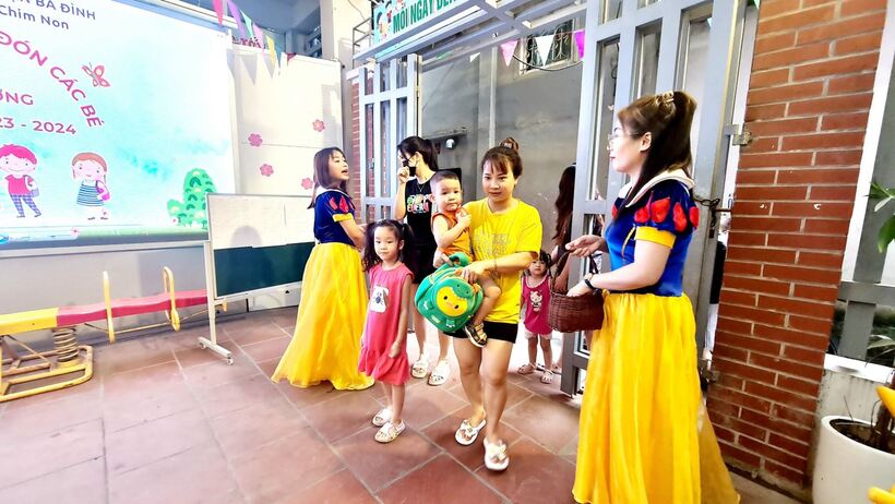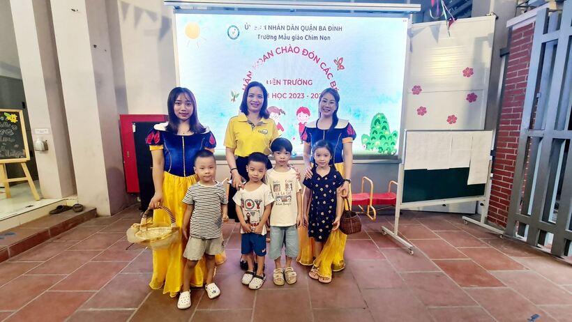 Các bé trường Mẫu giáo Chim Non hân hoan phấn khởi tới trường. Đặc biệt hơn đối với các bé lớp nhà trẻ D bởi đó là ngày đầu tiên các bé được đến trường Mầm non.