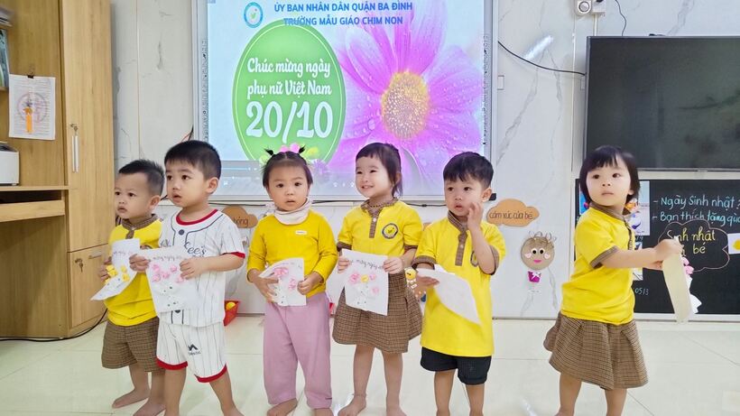Nhân dịp kỷ niệm 93 năm ngày thành lập Hội Liên hiệp Phụ nữ Việt Nam, trường Mẫu giáo Chim Non đã tổ chức được nhiều hoạt động thiết thực cho học sinh nhằm giáo dục truyền thống tự hào của phụ nữ Việt Nam, bồi dưỡng lòng yêu thương và biết ơn tới các bà, các mẹ cho các bạn nhỏ. Cụ thể, các tổ chuyên môn trong nhà trường đã có những buổi giao lưu giữa các lớp, tổ chức cho học sinh làm quà tặng bà, tặng mẹ. Các hoạt động này được các con hưởng ứng nhiệt tình và đạt kết quả rất tốt. Bạn nào cũng phấn khởi, vui mừng mang những món quà do tự tay mình làm ra để tặng mẹ của mình.
