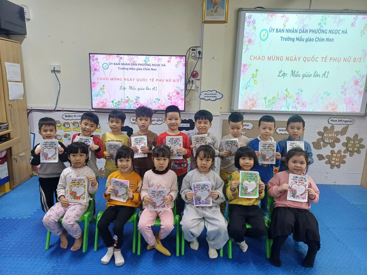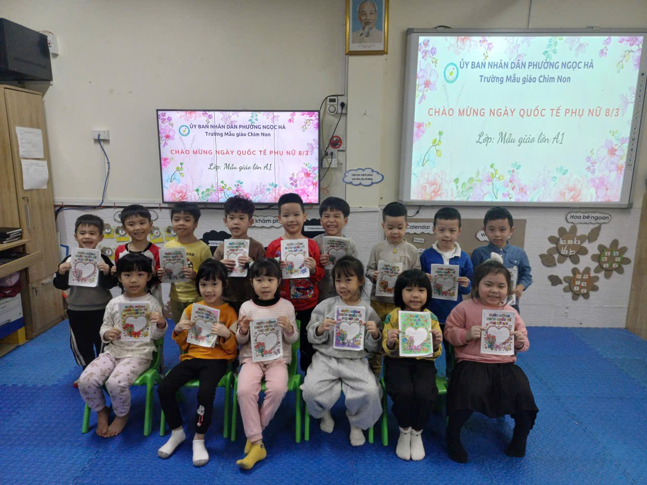 Dưới đây là một số hình ảnh hoạt động của các con lớp A1 khi làm bưu thiếp tặng bà, tặng mẹ ngày 8/3: