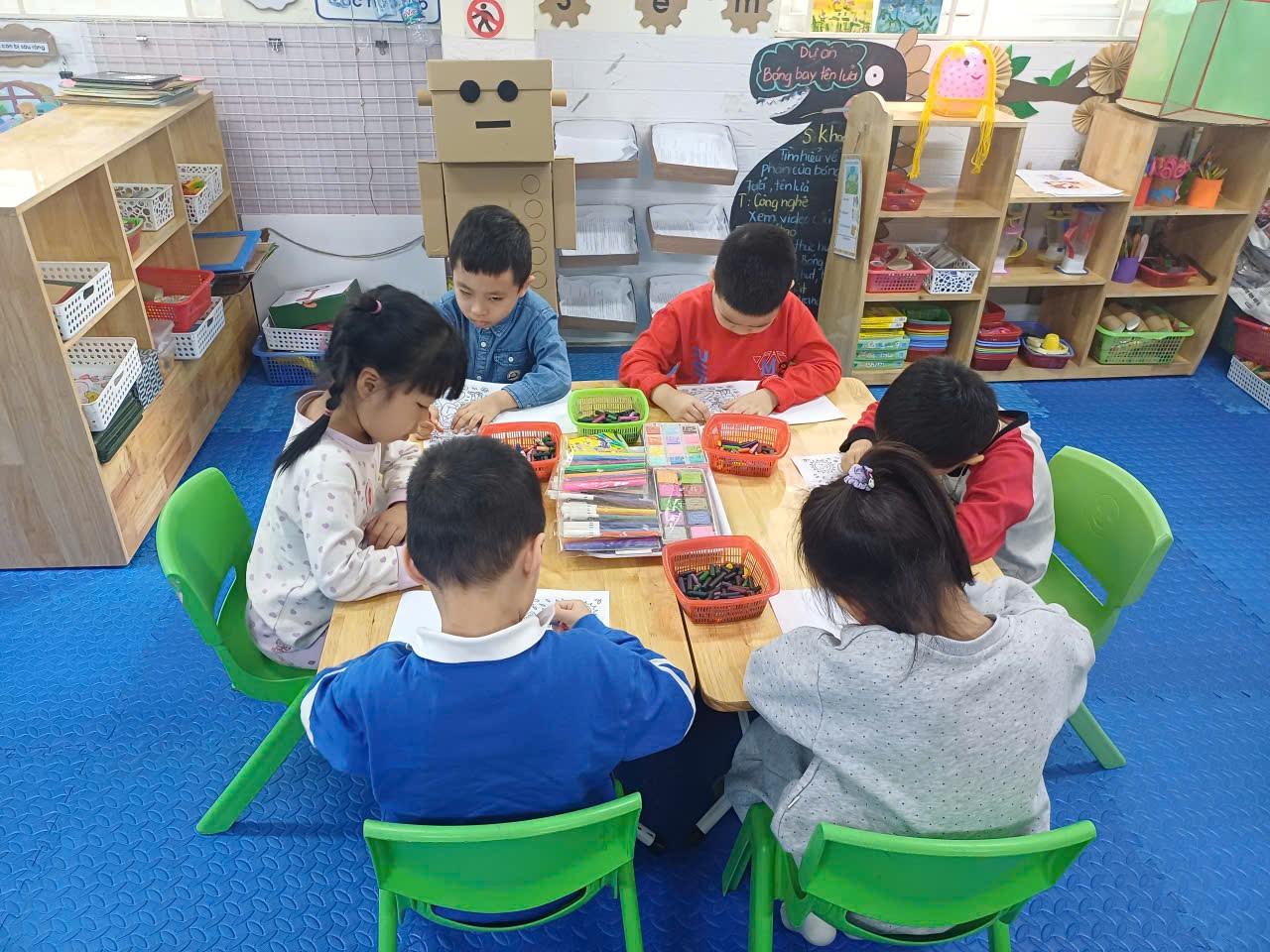 Với sự chuẩn bị chu đáo từ các cô giáo, các bé được thỏa sức sáng tạo bằng những nguyên vật liệu đơn giản, thân thiện với môi trường như giấy màu, bút màu, keo dán… Dưới sự hướng dẫn tận tình, từng đôi tay nhỏ bé đã cắt, dán, tô màu và trang trí nên những tấm thiệp xinh xắn, chứa đựng bao tình cảm yêu thương. Không chỉ là một hoạt động thủ công, trải nghiệm này còn giúp các bé hiểu thêm về ý nghĩa của ngày 8/3,  tình yêu thương, sự biết ơn dành cho bà, mẹ,... Khi tự tay trang trí những tấm thiệp và viết lên đó những lời chúc chân thành, các bé học được cách thể hiện tình cảm của mình một cách tự nhiên và đầy ý nghĩa.