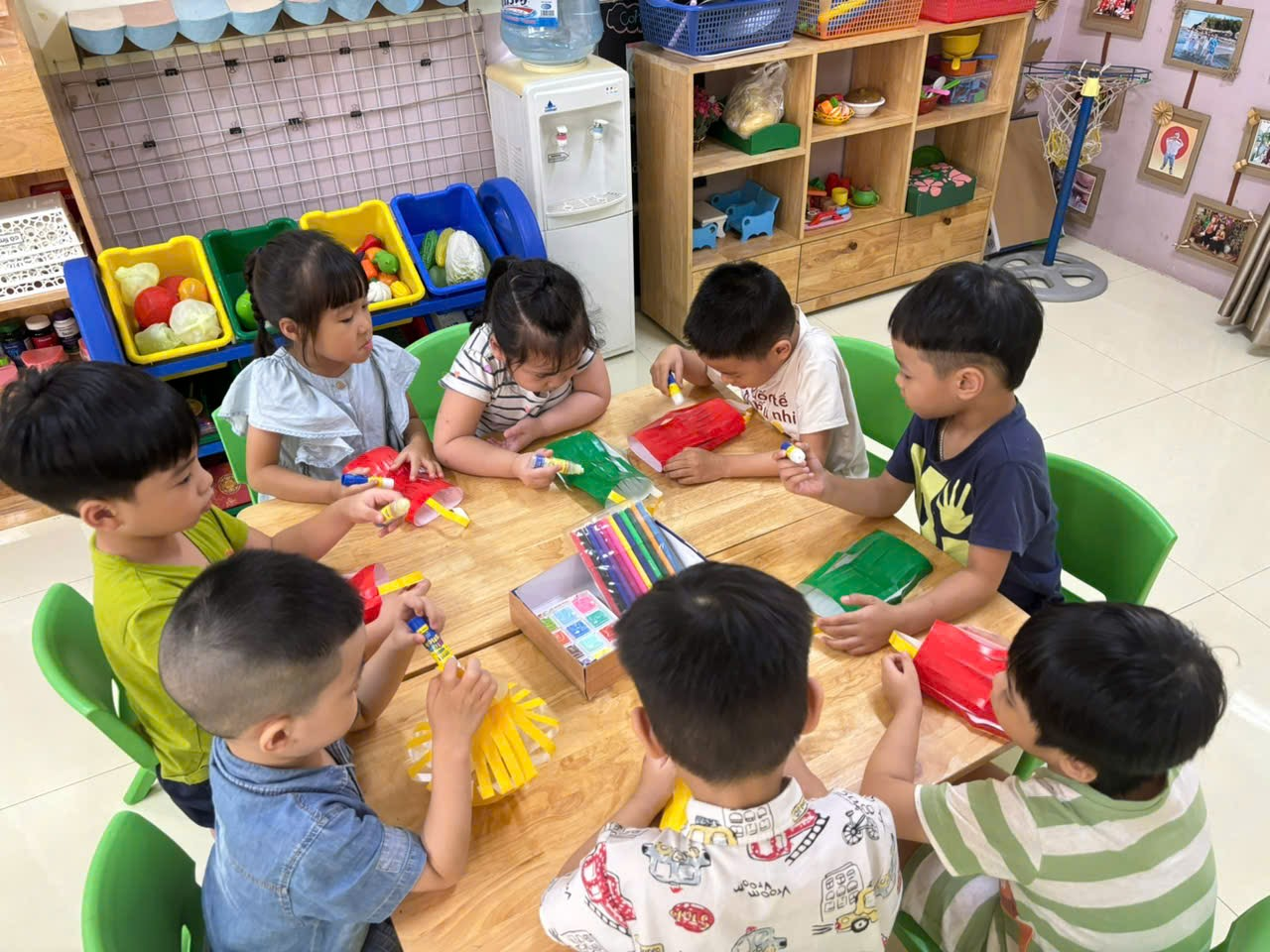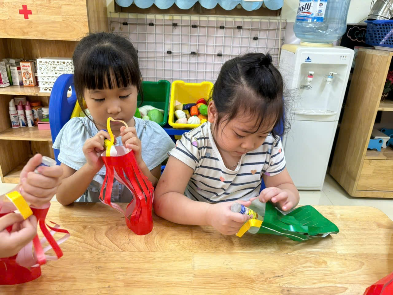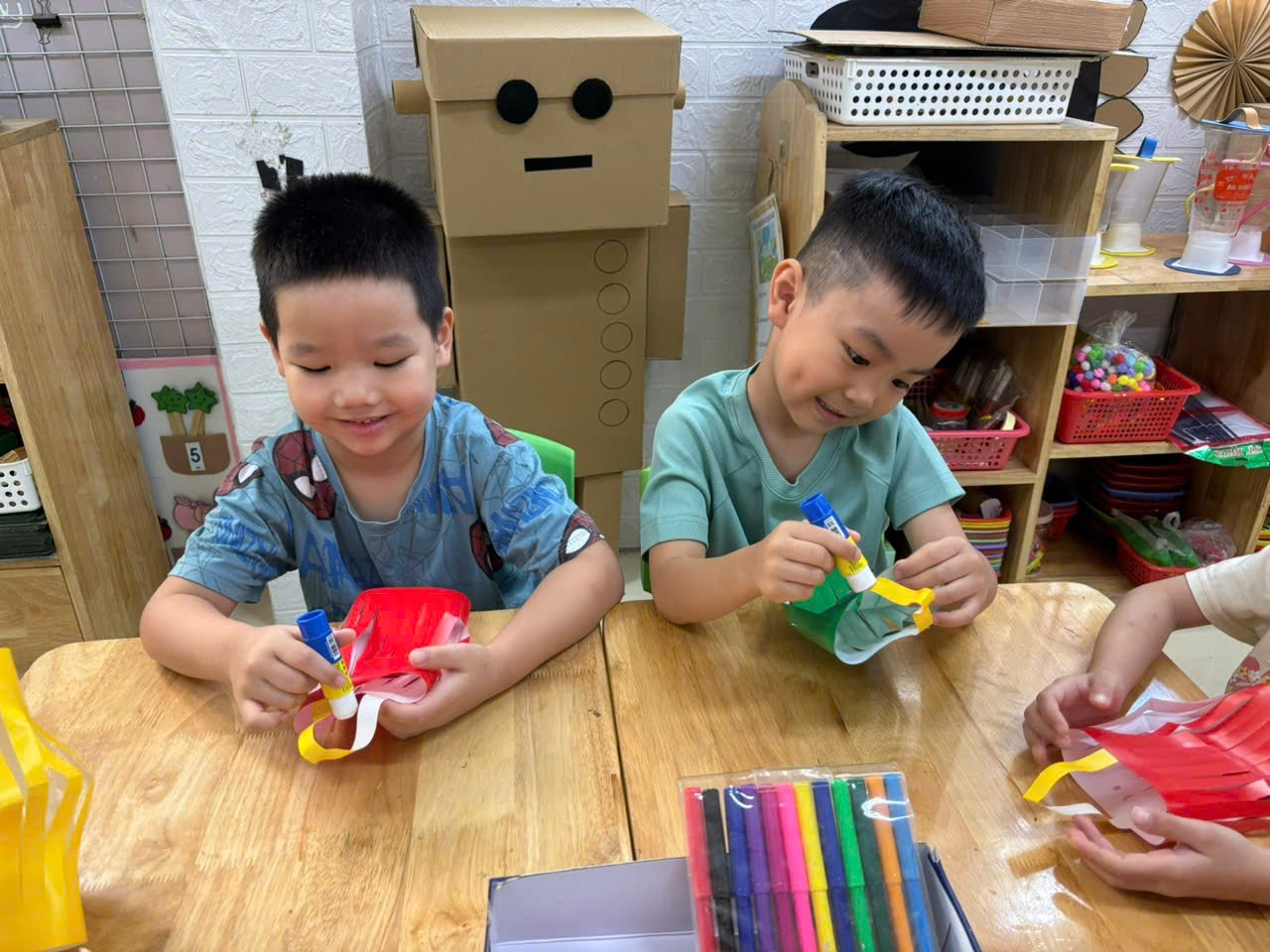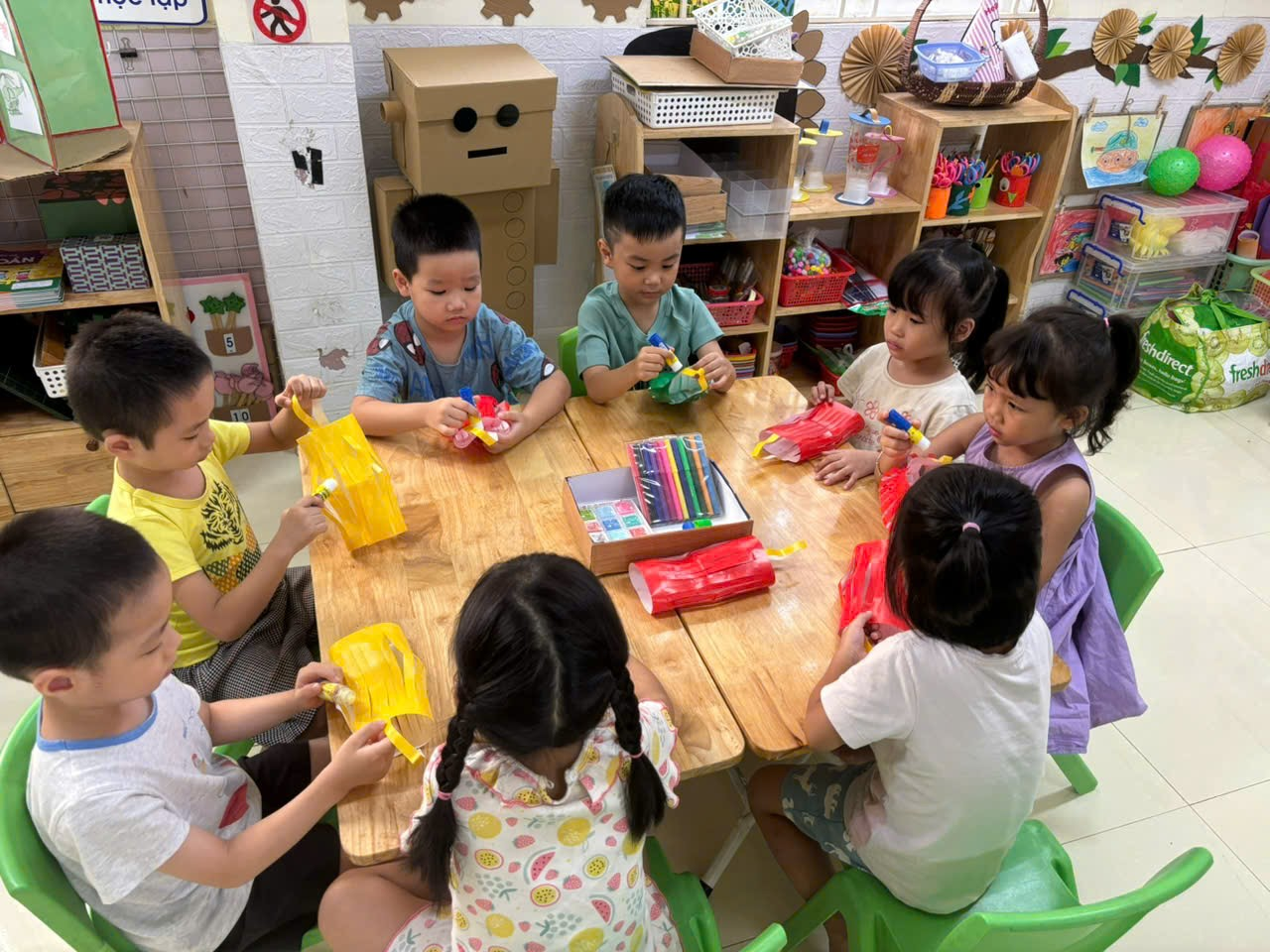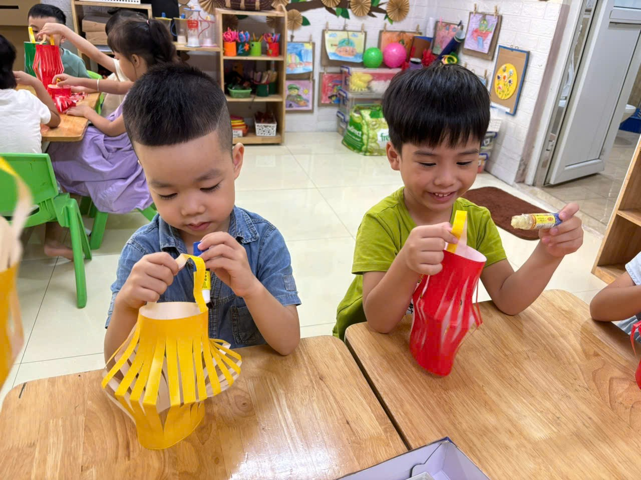 Bố mẹ hãy cùng ngắm nhìn những khoảnh khắc đáng yêu của các con trong hoạt động trải nghiệm làm đèn lồng ngày hôm nay nhé!