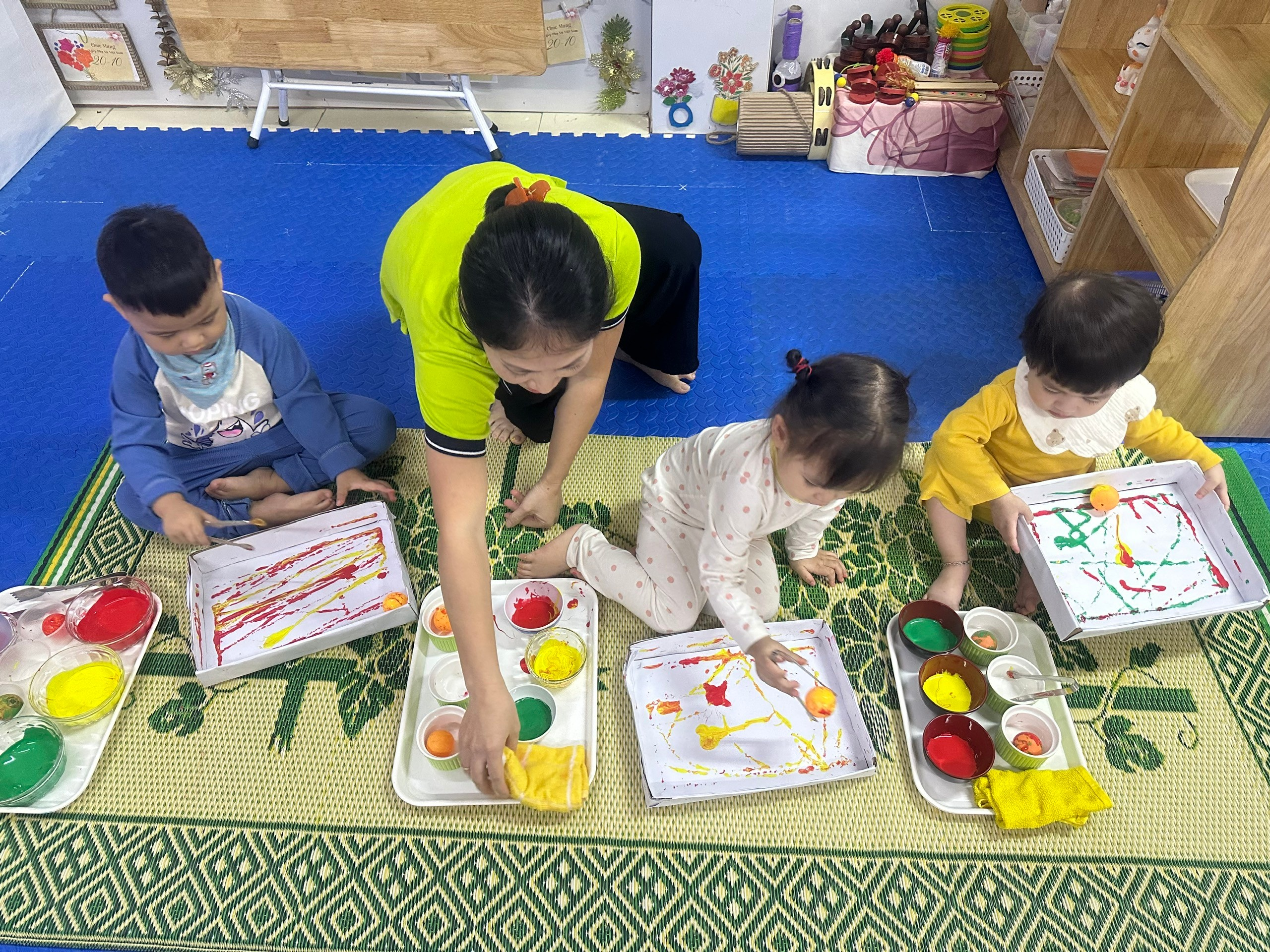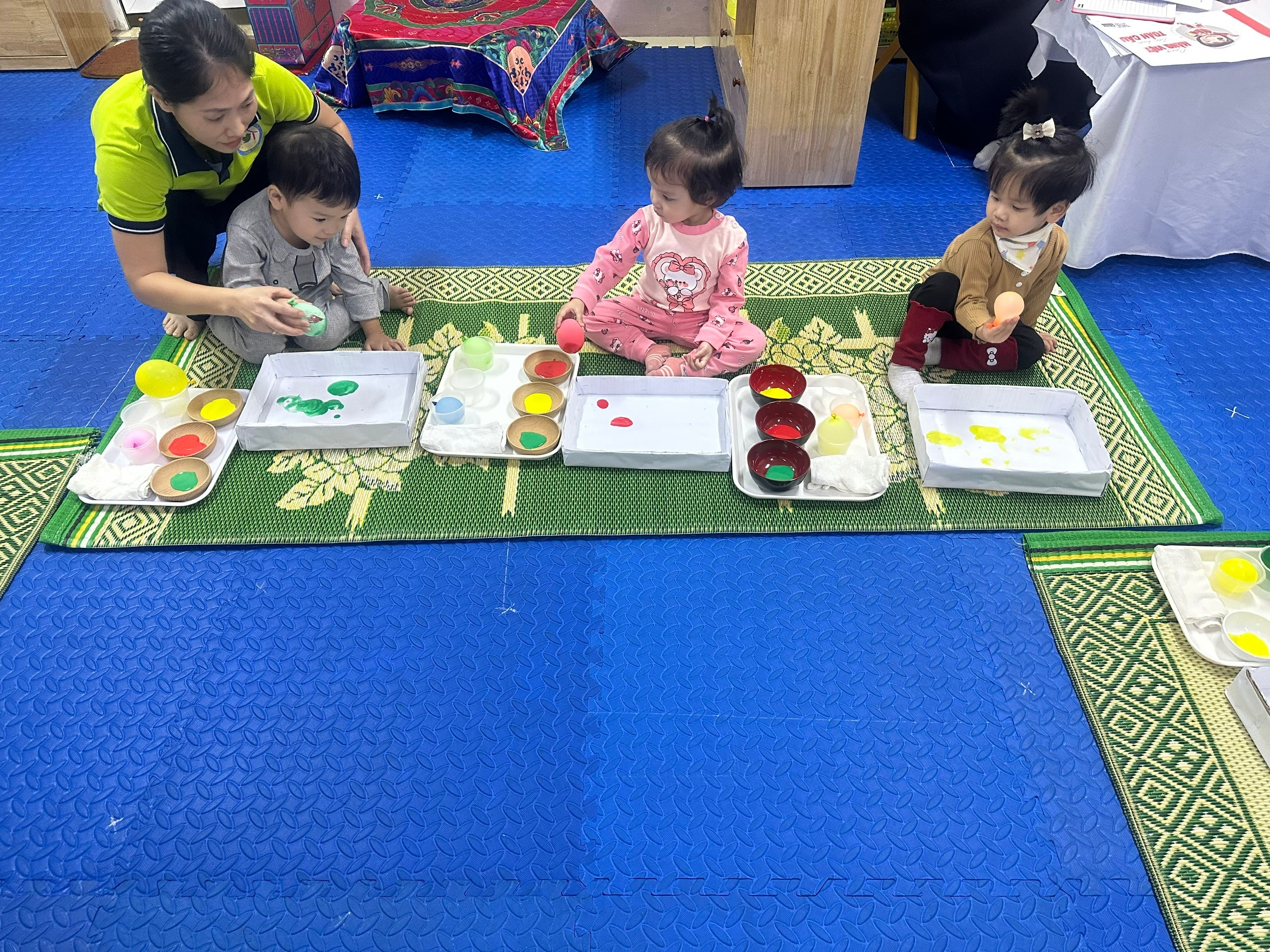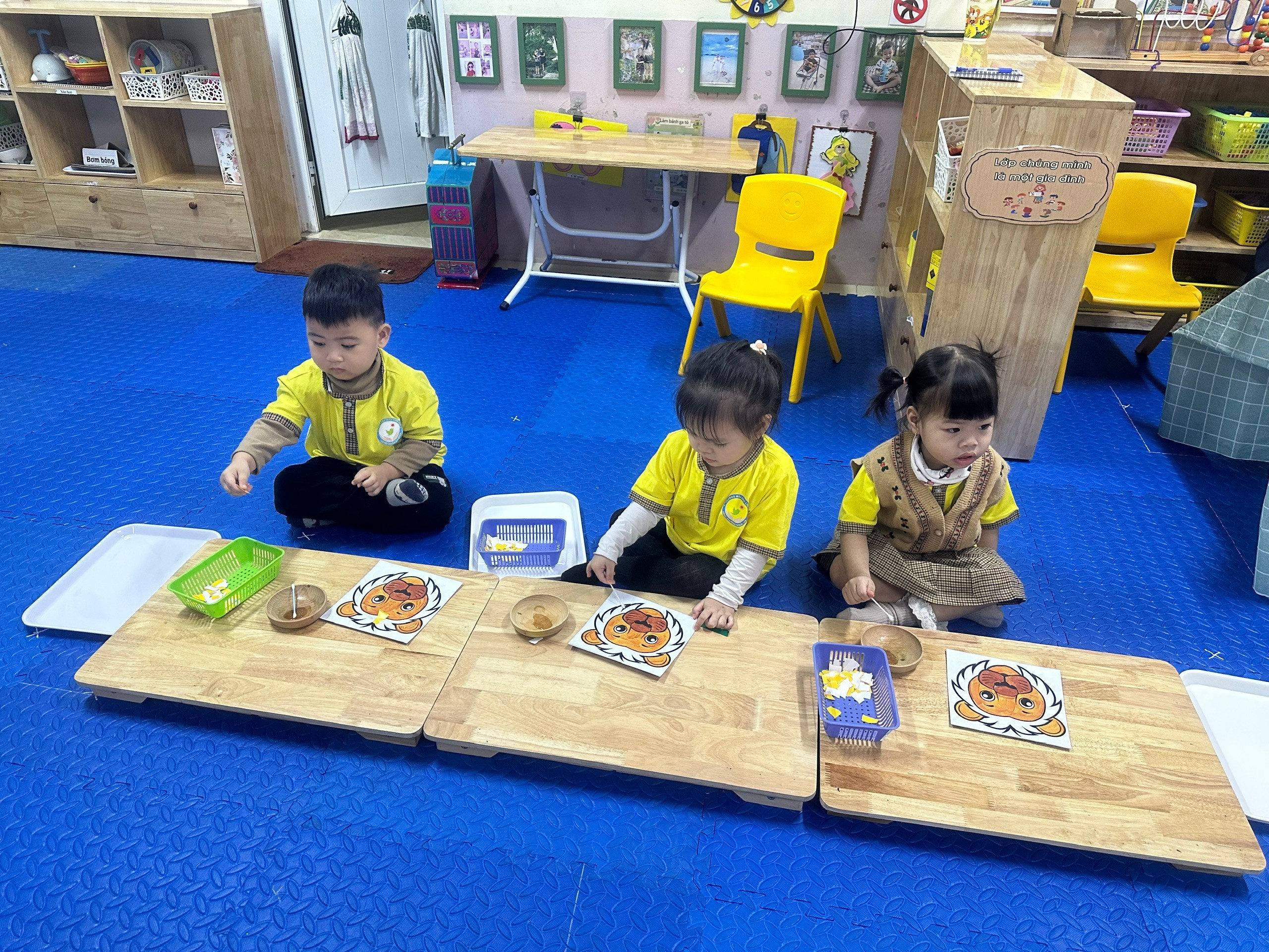 Kỳ Hội giảng này, các cô giáo lớp D đi sâu vào lĩnh vực phát triển thẩm mỹ cho trẻ với các hoạt động Tạo hình: cô Loan với đề tài “Cho trẻ chơi với màu”; cô Phương với đề tài “Trang trí bờm sư tử”. Cả hai hoạt động đã thu hút sự hứng thú của trẻ, trẻ được cảm nhận vẻ đẹp của sắc màu, học được nhiều kỹ năng tạo hình mới và hoàn thành được các sản phẩm thú vị, đáng yêu. Kính mời quý phụ huynh cùng xem những khoảnh khắc đáng nhớ của các con: