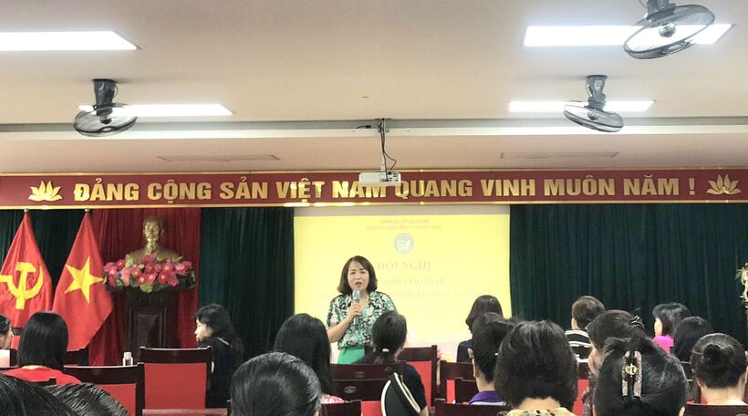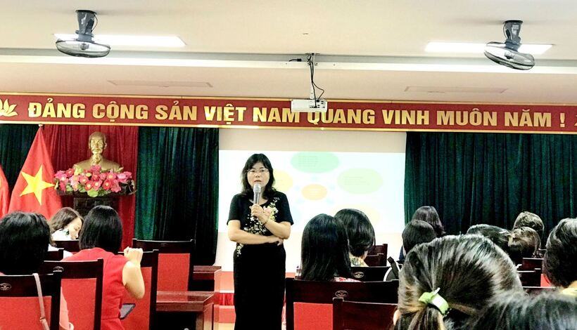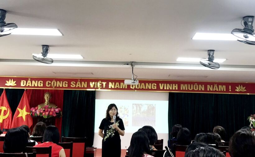 Tham gia buổi tập huấn hôm nay có đại diện Ban Giám hiệu, giáo viên lớp Mẫu giáo lớn của các trường, lớp mầm non công lập và ngoài công lập trên toàn Quận Ba Đình.