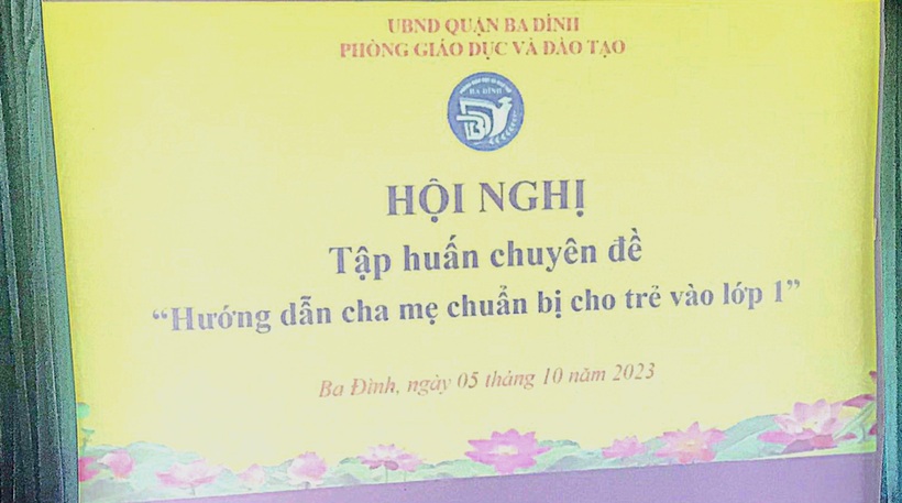 Bé chuẩn bị vào lớp 1 cần chuẩn bị những gì là nỗi trăn trở của nhiều phụ huynh bởi đây là cột mốc khá quan trọng, khiến trẻ gặp nhiều bỡ ngỡ và lạ lẫm. Vậy cô giáo cần làm gì để hướng dẫn cha mẹ trẻ? Sáng nay, 5/10, tại trường Mầm non Thành Công, Phòng GD & ĐT Quận Ba Đình tổ chức buổi tập huấn chuyên đề " Hướng dẫn cha mẹ chuẩn bị cho trẻ vào lớp 1" do Tiến sỹ Nguyễn Thị Kim Thanh- Giảng viên chính, Phó hiệu trưởng Trường CĐSPTƯ trực tiếp giảng dạy