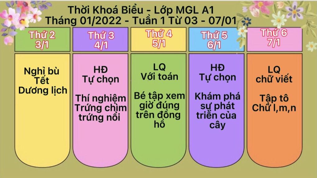 Trong thời gian các con nghỉ dịch, bố mẹ hãy cùng con tham gia các hoạt động với cô để giúp trẻ phát triển toàn diện trong giai đoạn này nhé. Nhà trường kính gửi quý phụ huynh Kế hoạch kết nối các hoạt động giáo dục tuần 01 tháng 01 năm 2022: