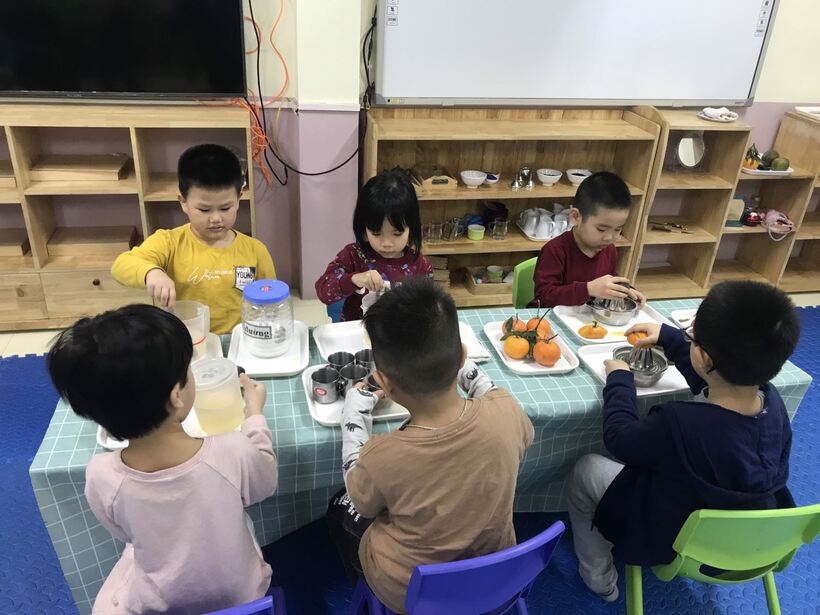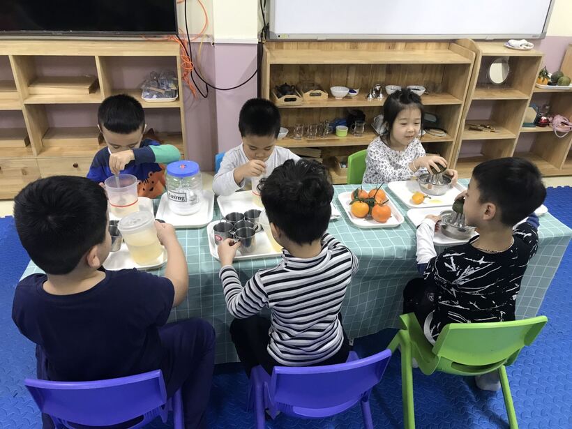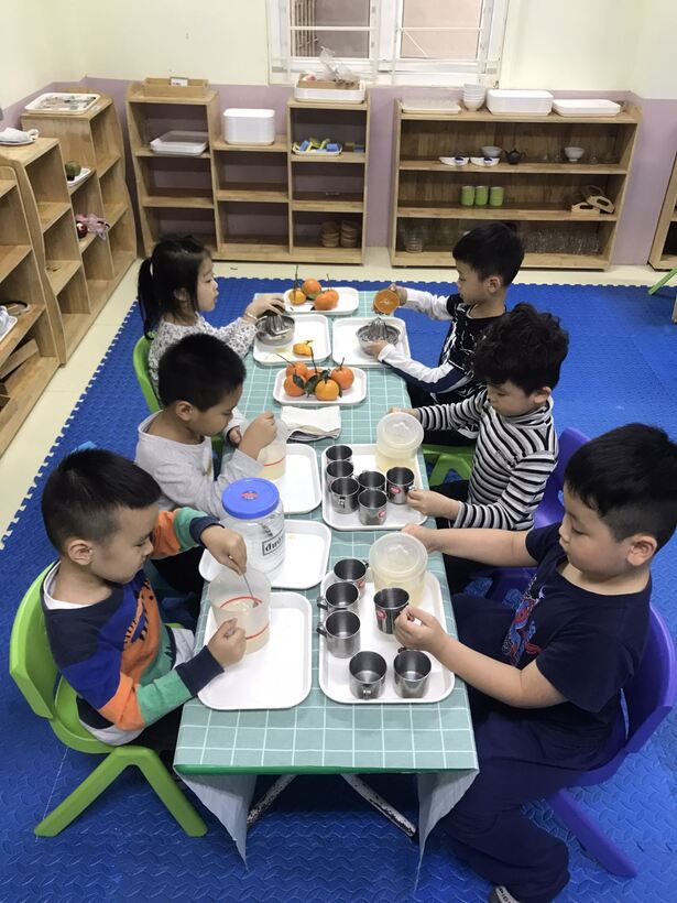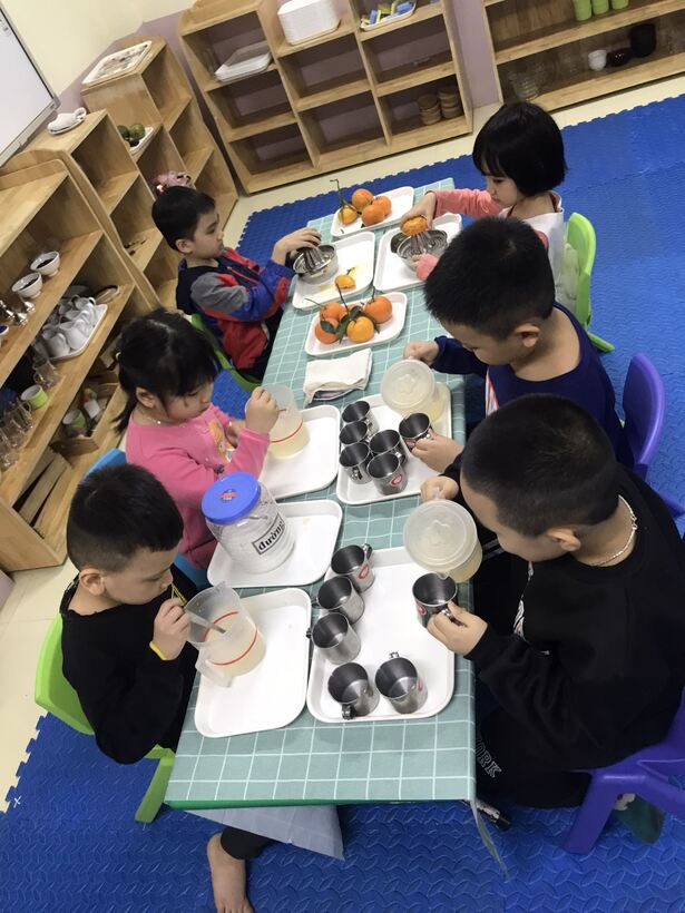Chúng mình cùng xem các bạn lớp A1 vắt nước cam nhé!