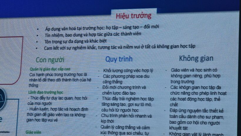 Để làm được điều đó sẽ cần sự thay đổi của tất cả đội ngũ. Và người đầu tiên cần thay đổi chính là Hiệu trưởng, là BGH nhà trường. Đó là những nhân tố có trách nhiệm lan tỏa, giúp mọi thành viên hiểu rằng hạnh phúc không ở đâu xa, nó ở chính trong những công việc hàng ngày, do chúng ta tạo ra từ những việc làm, cách ứng xử, những lời nói hành động của chính mỗi cá nhân.