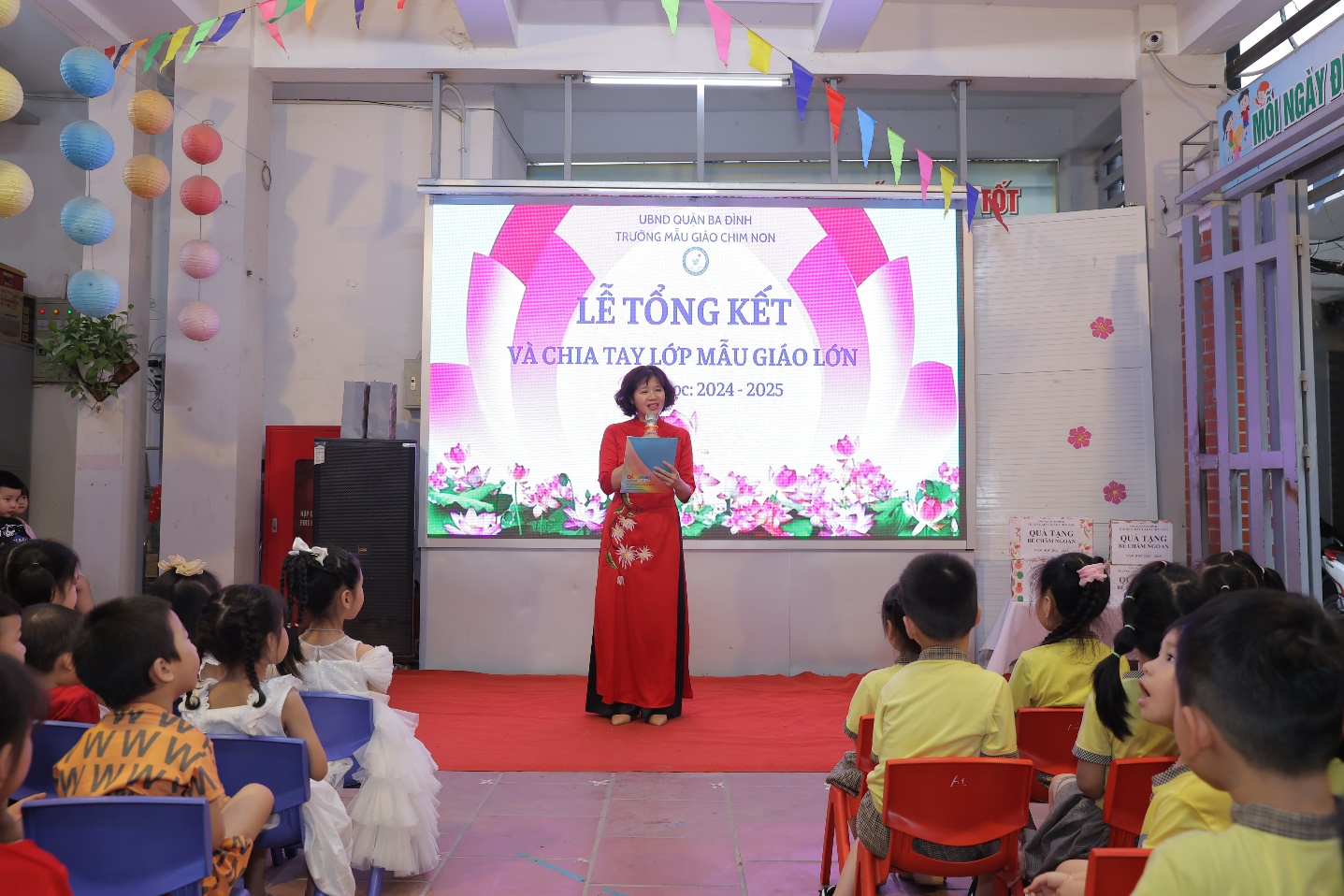 Sáng ngày 26/5, trường Mẫu giáo Chim Non đã tổ chức lễ bế giảng năm học 2024-2025. Trong không khí rộn ràng của những ngày cuối tháng 5, toàn thể giáo viên và các con học sinh của trường Mẫu giáo Chim Non hào hứng tham gia buổi lễ.