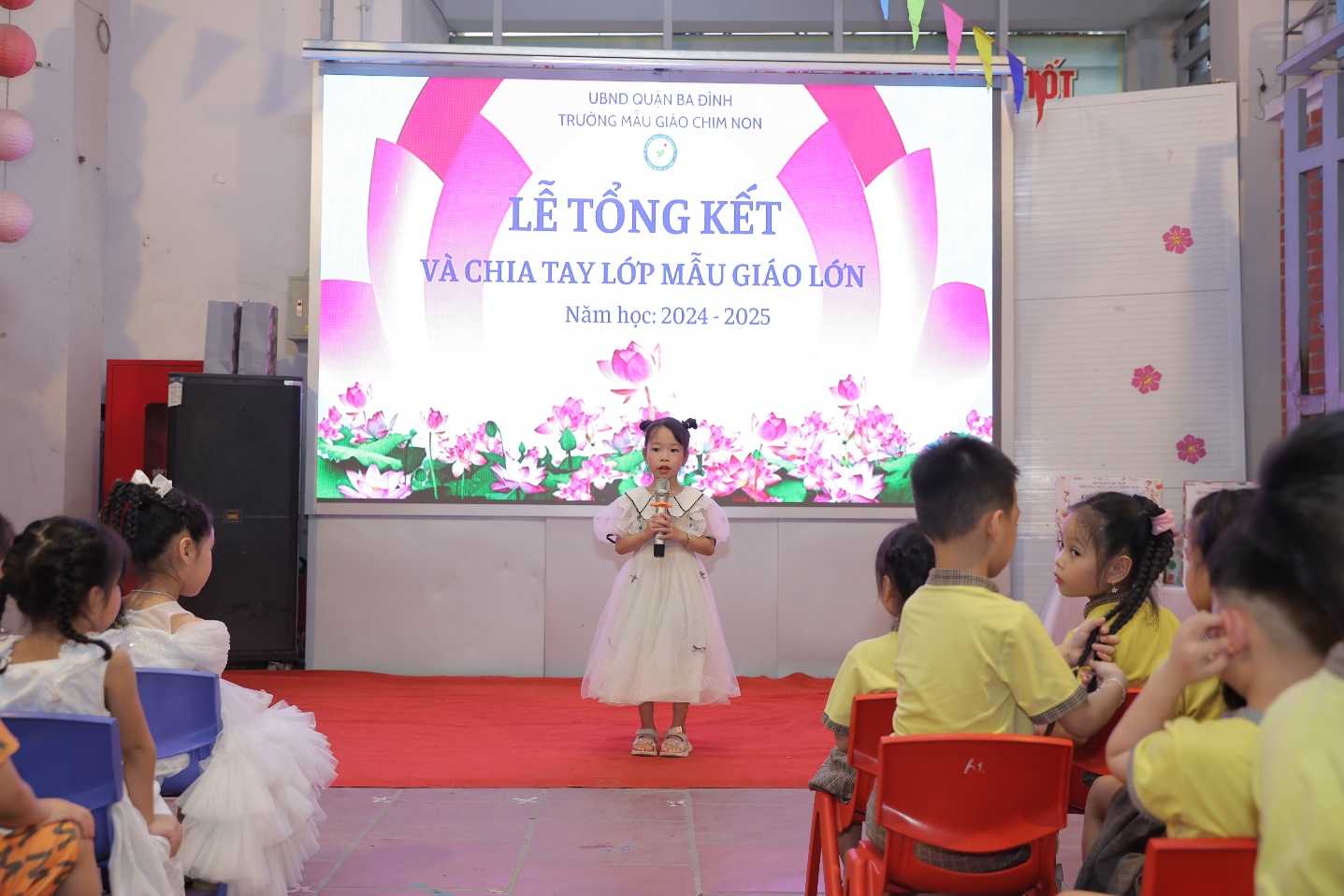 Thay mặt hơn 100 học sinh trong nhà trường, bé , học sinh lớp MGL A1 đã nói lời tri ân tới cô giáo của mình, các cô bác trong nhà trường đã chăm sóc – dạy dỗ các con trong suốt bậc học mầm non.