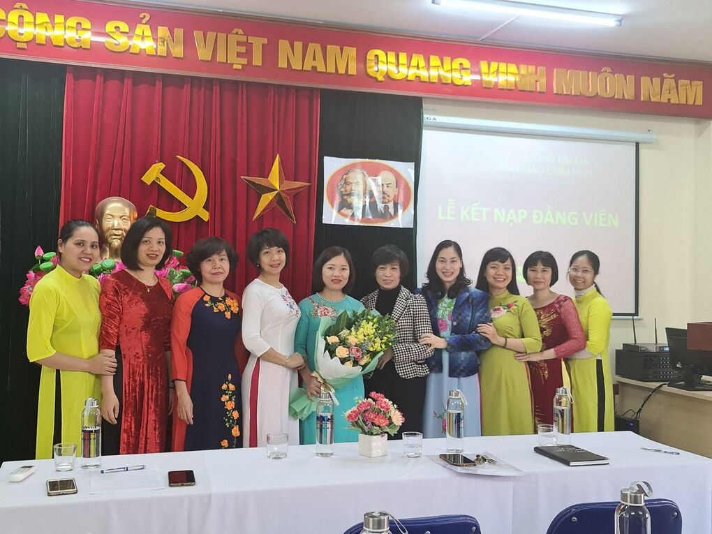 Công tác phát triển Đảng viên Chi bộ Mẫu giáo Chim Non trực thuộc Đảng ủy Phường Kim Mã nhiều năm gần đây đã có những tiến bộ vượt bậc. Từ 4 Đảng viên năm 2015 đến nay đã kết nạp được thêm 5 Đảng viên đưa tỷ lệ Đảng viên của trường lên con số 45%. 14h00 chiều thứ tư ngày 13/01/2021, Chi bộ Mẫu giáo Chim Non đã long trọng tổ chức Lễ  Kết nạp Đảng viên cho quần chúng Ngô Thị Kim Dung, nhân viên trường MG Chim Non. Đến dự và chúc mừng Chi bộ có đại diện lãnh đạo Đảng ủy Phường Kim Mã, đồng chí Nguyễn Hải Hoa- Phó Bí thư trường trực Đảng ủy, chủ tịch HĐND Phường. Đồng chí Bí thư Chi bộ Nhà trường Lê Bảo Ngọc đã đọc và trao Quyết định Kết nạp của Đảng bộ Quận Ba Đình cho Đ/c Ngô Thị Kim Dung. Đ/c Bí thư cũng đã chúc mừng đồng thời giao nhiệm vụ cho đ/c Đảng viên mới trong thời gian tới cũng như các đ/c trong chi bộ để kèm cặp, bồi dưỡng thêm cho đ/c Dung. Cuối cùng, đ/c Nguyễn Hải Hoa đại diện cho Đảng ủy Phường Kim Mã đã phát biểu chúc mừng và giao nhiệm vụ cho chi bộ trong giai đoạn tiếp theo.