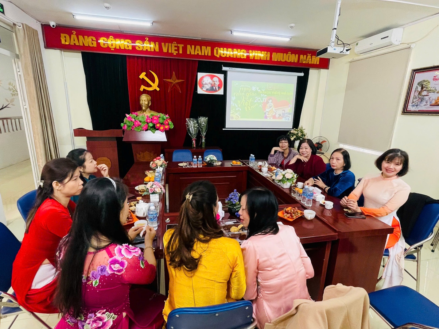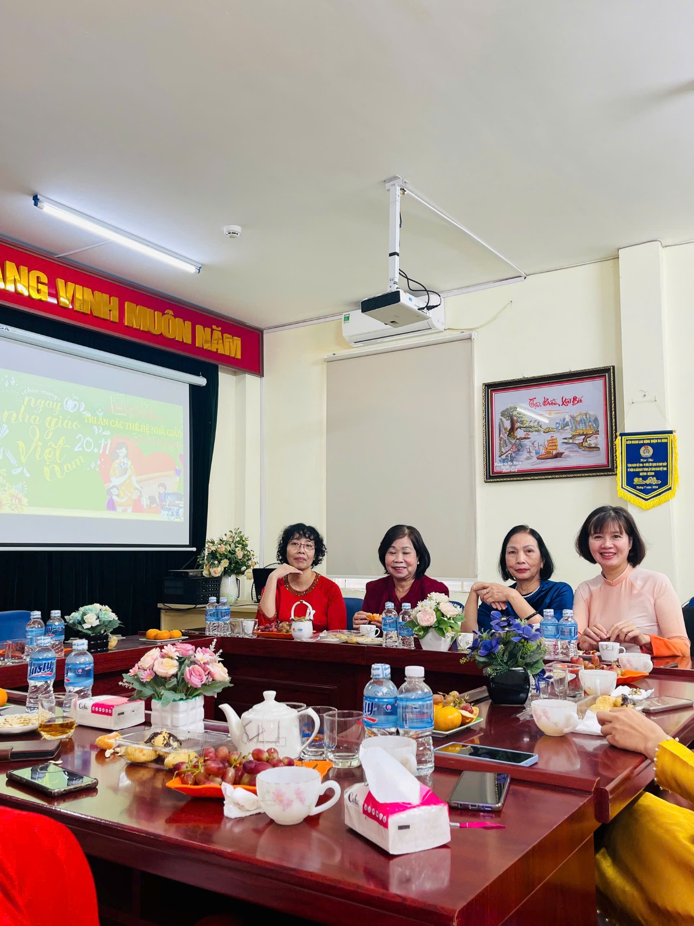 Các đồng chí trong Ban giám hiệu thay mặt cho đội ngũ CBGVNV tri ân tặng hoa và quà chúc mừng Hội Cựu giáo chức nhân kỷ niệm 43 năm Ngày nhà giáo Việt Nam và tặng hoa chúc mừng các cựu giáo chức của nhà trường.