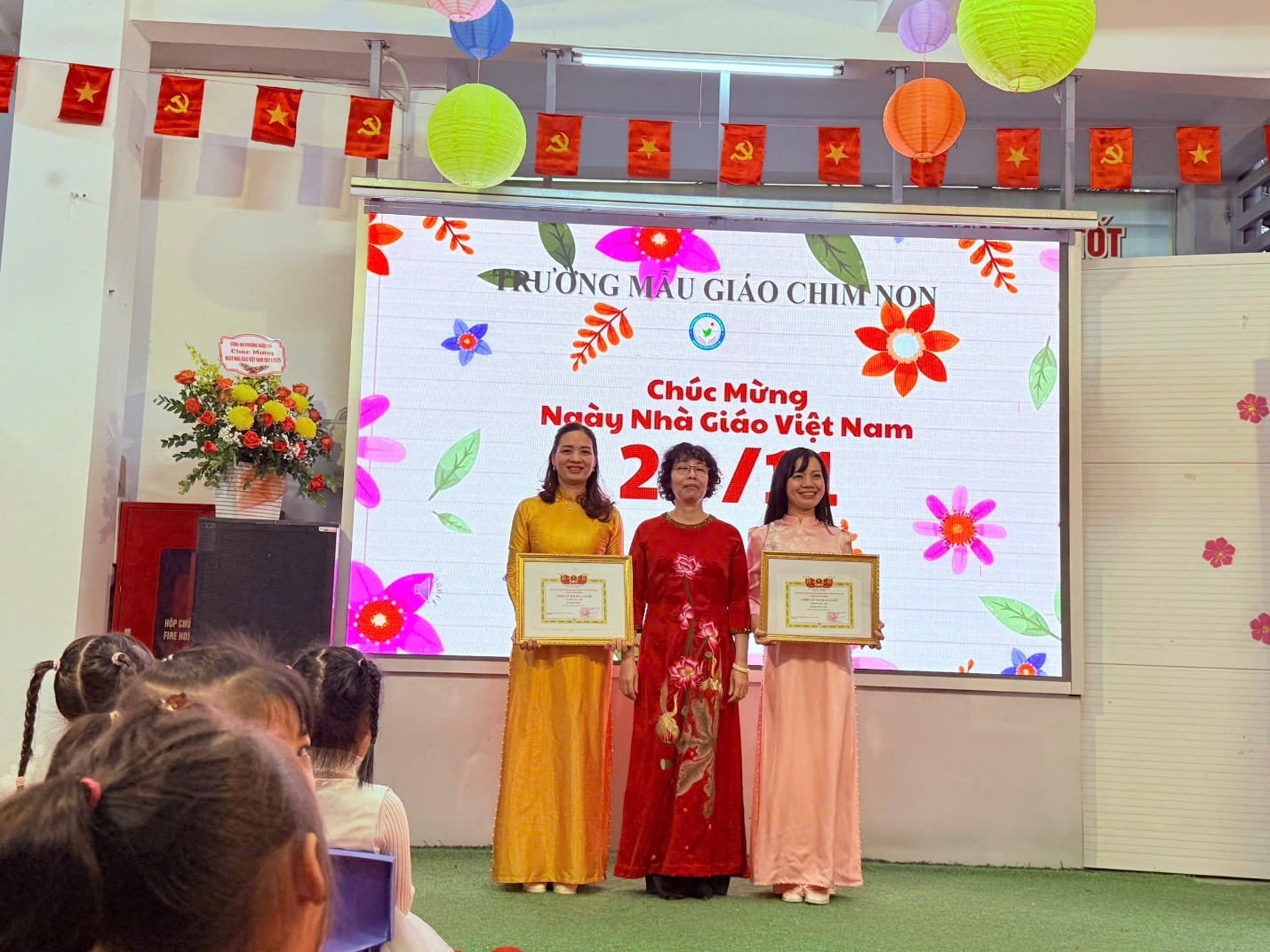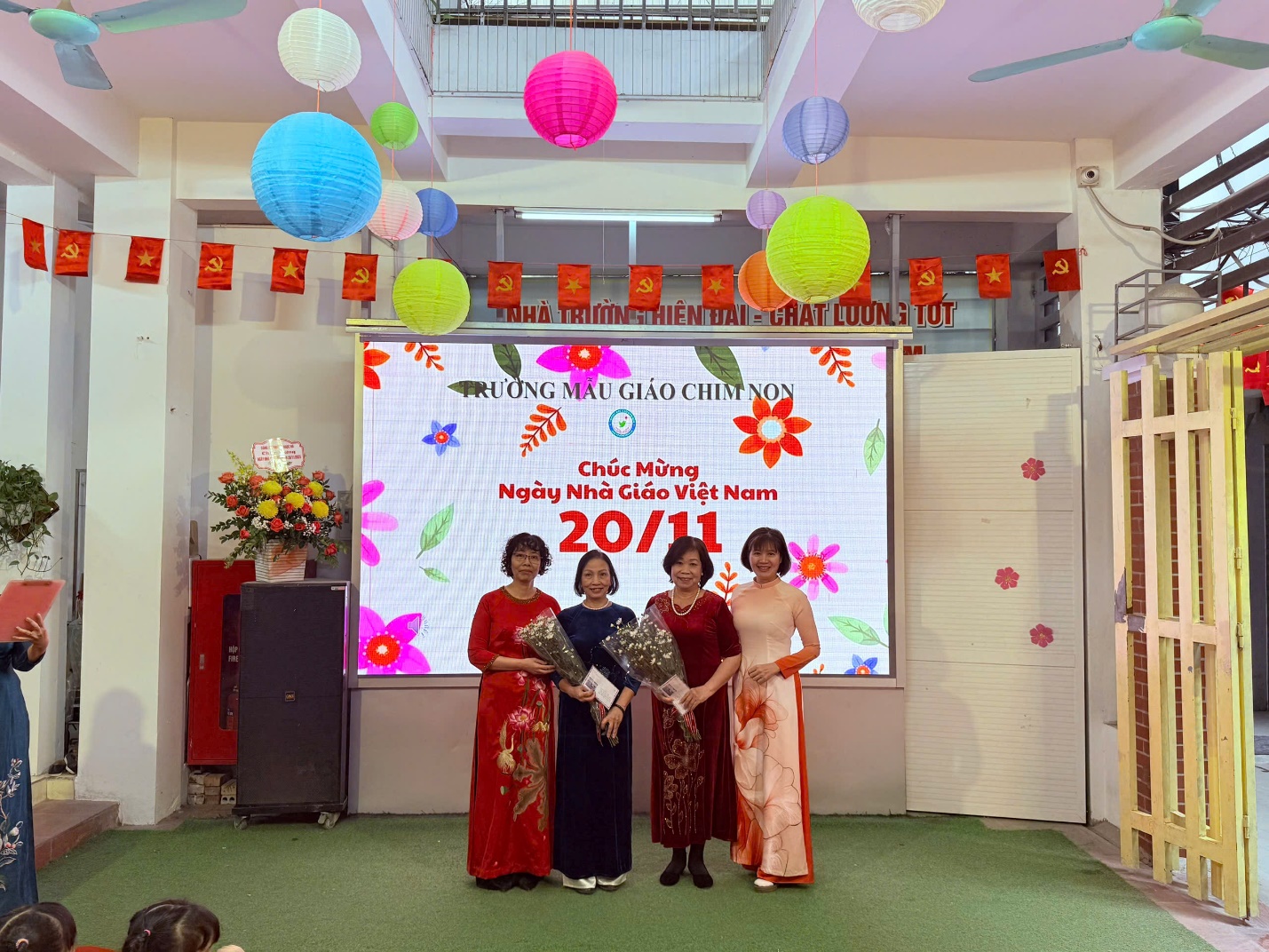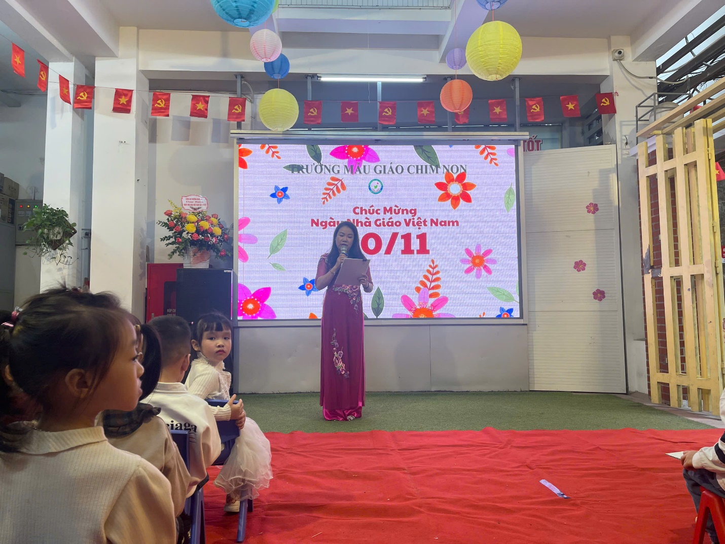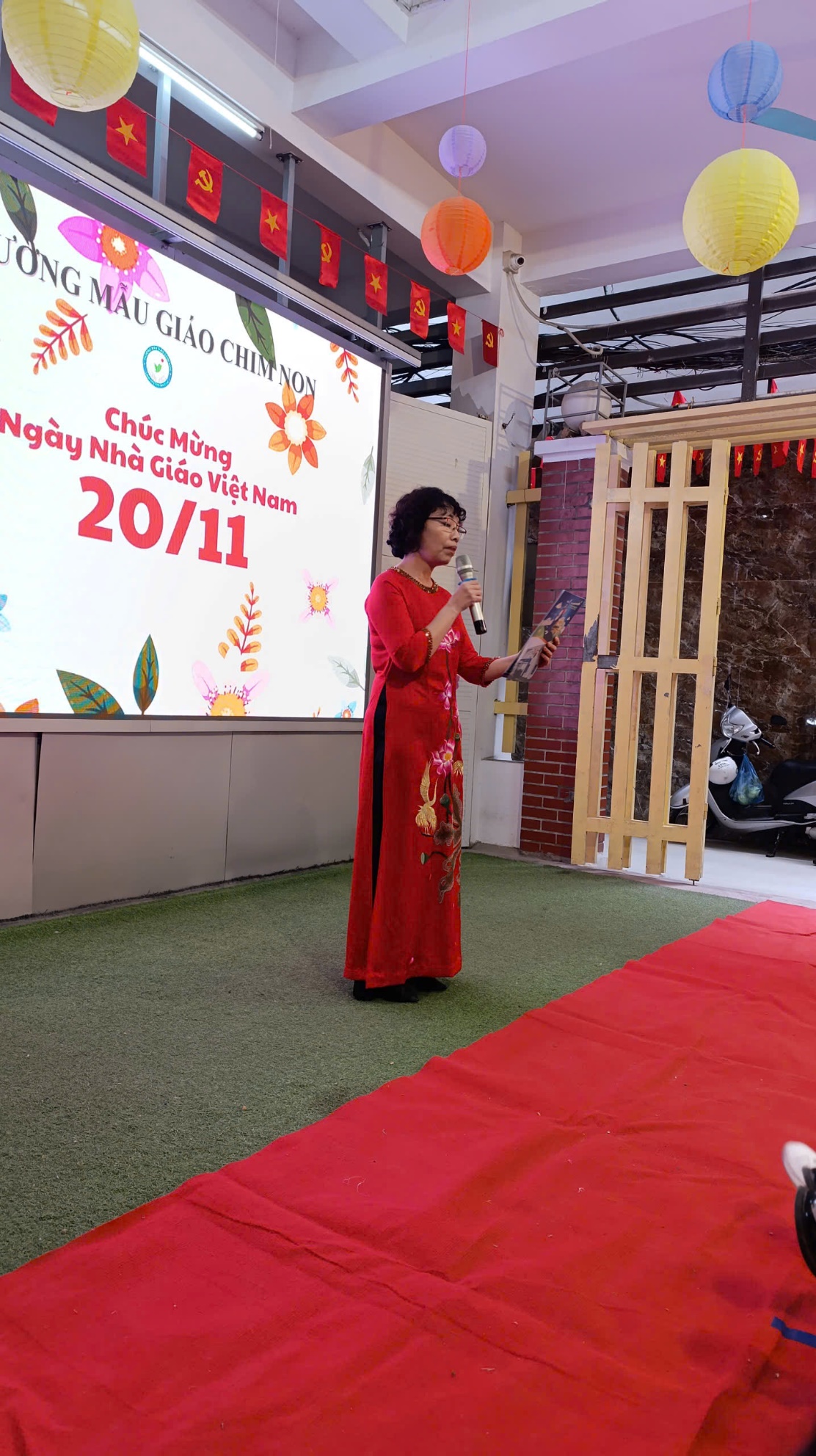 Trong buổi Lễ, Nhà giáo Lê Thị Thảo – Bí thư chi bộ, Hiệu trưởng đọc diễn văn chào mừng ngày Nhà giáo Việt Nam 20-11, đồng thời báo cáo những thành tích của cô và trò Nhà trường đã đạt được.