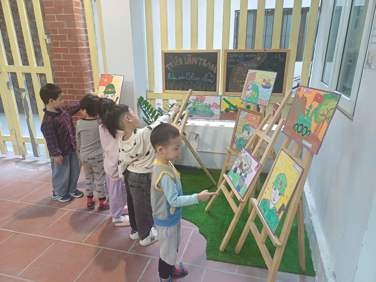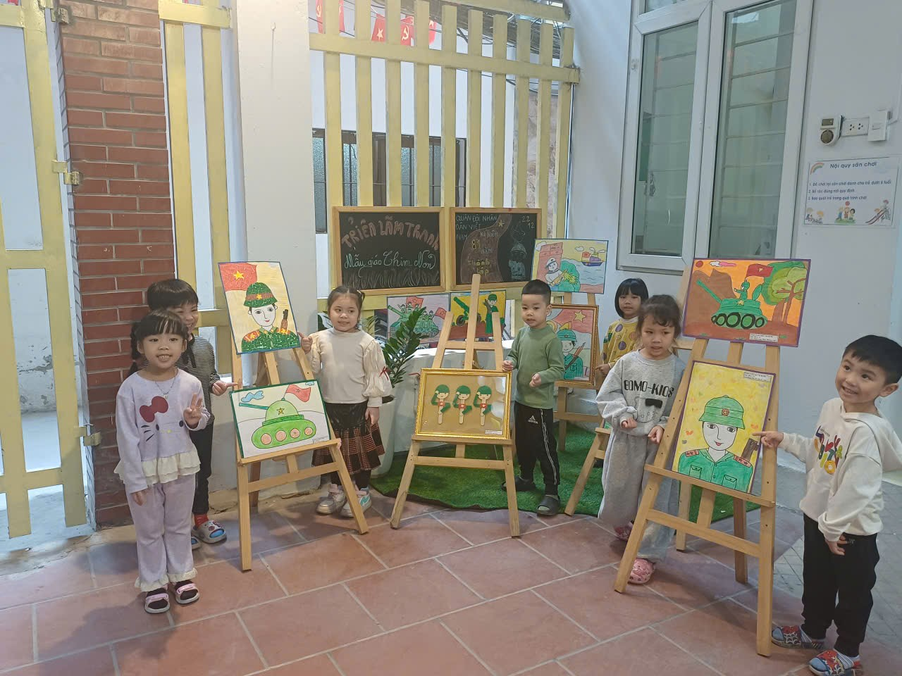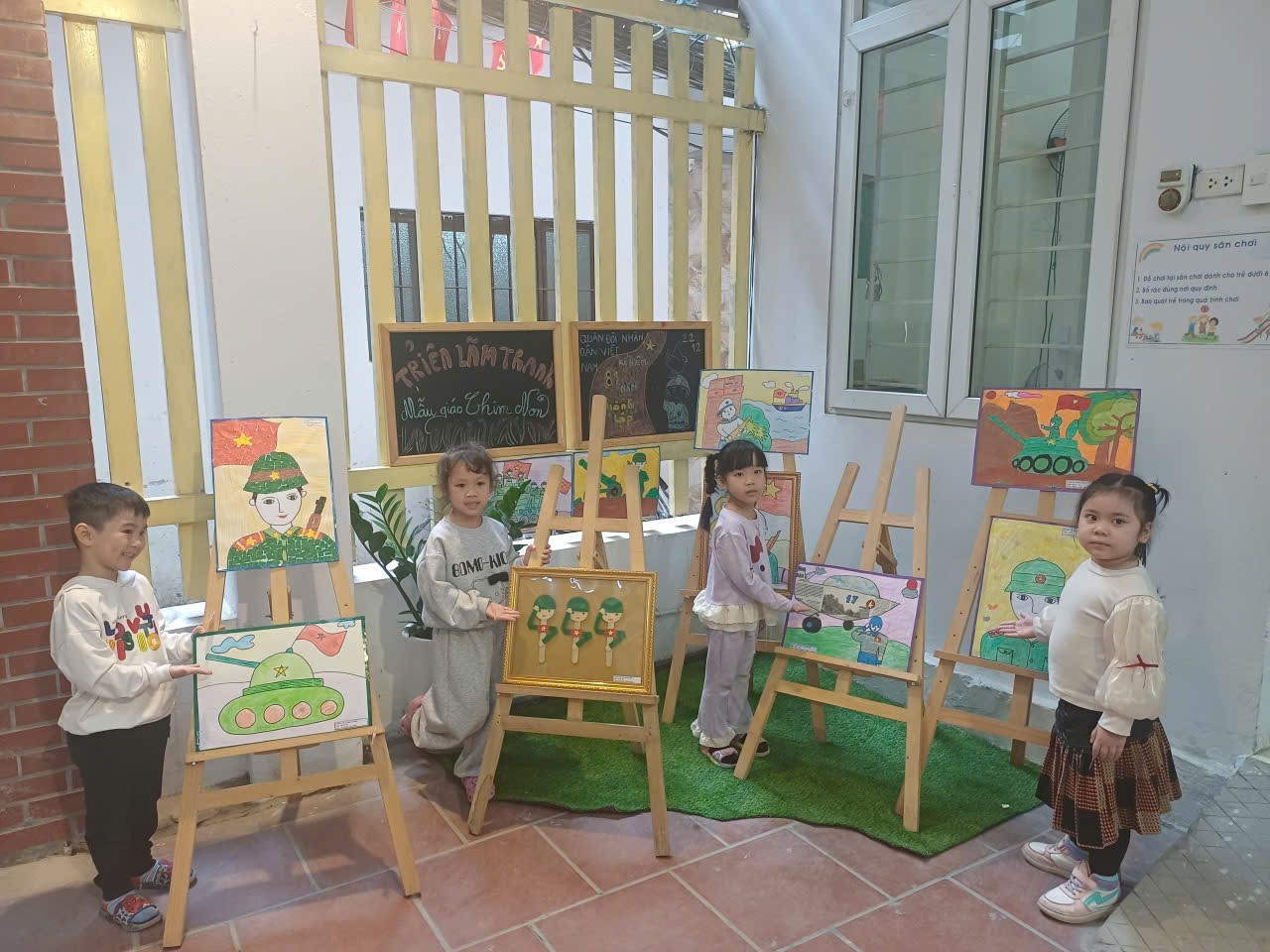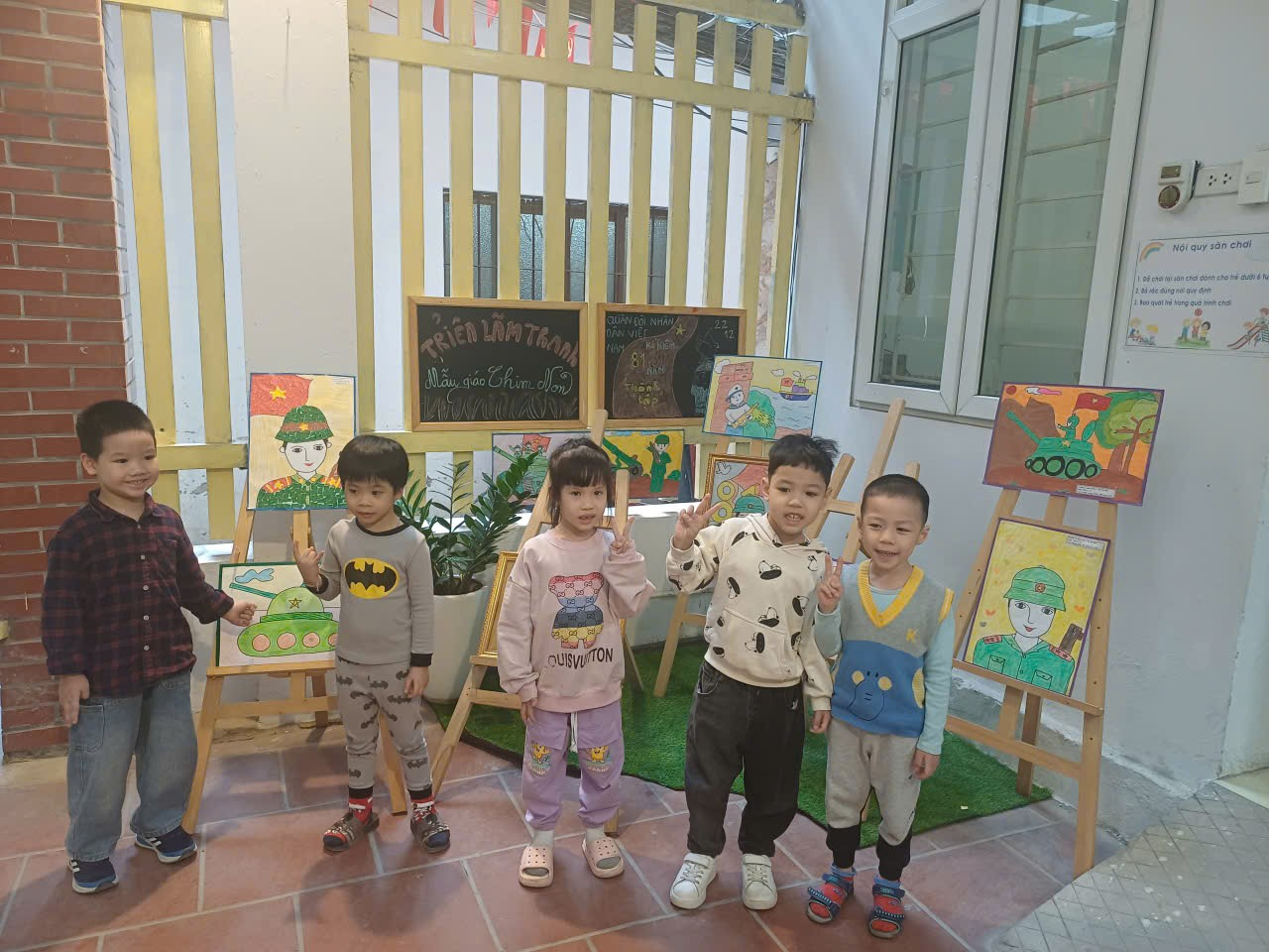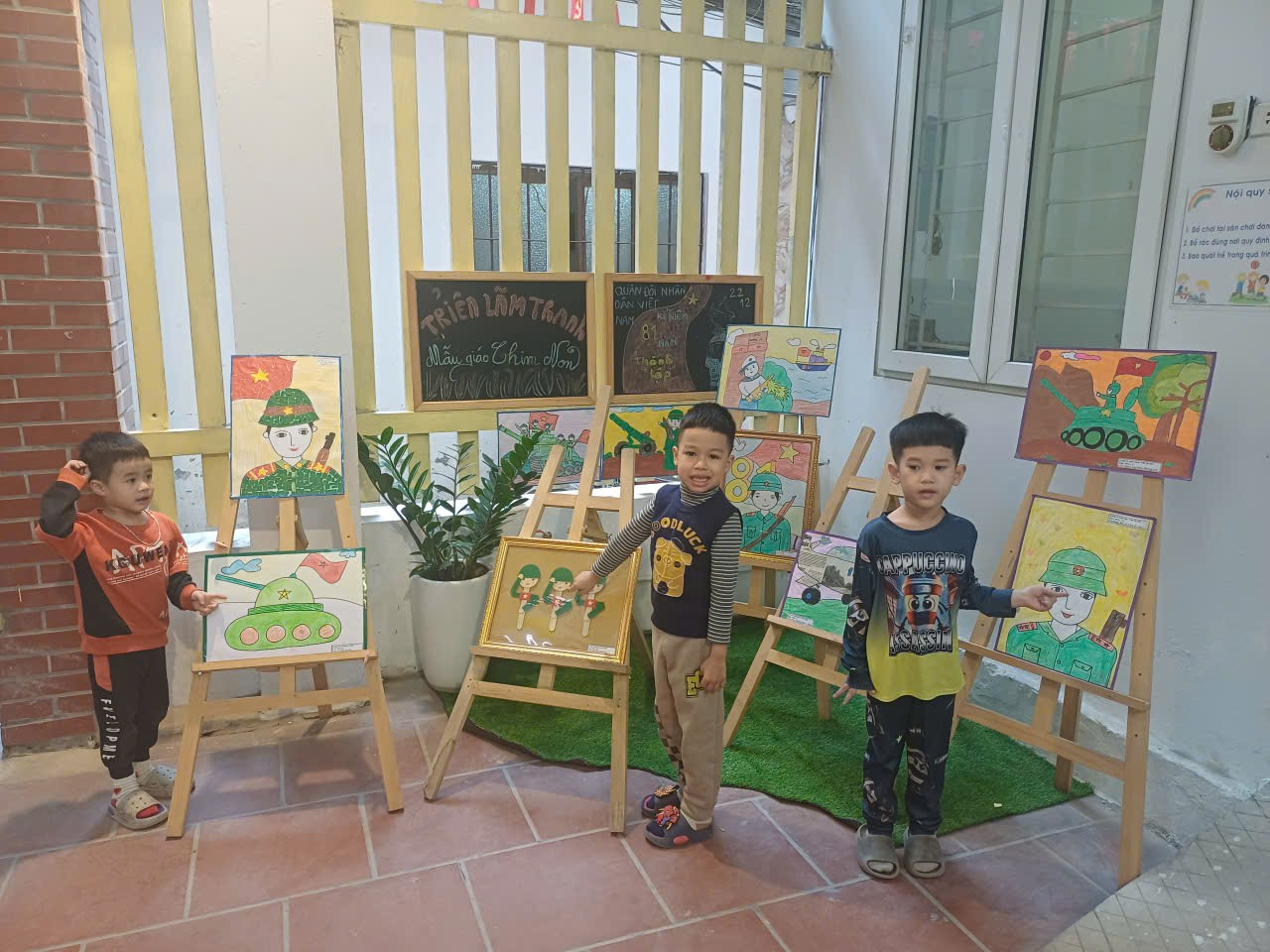 Đứng trước những bức tranh của chính mình, các con không chỉ tự hào về thành quả sáng tạo mà còn được học bài học đầu đời về lòng biết ơn. Hoạt động này giúp bồi đắp tâm hồn, giúp trẻ hiểu rằng: Để có được nụ cười hồn nhiên hôm nay là sự hy sinh thầm lặng của biết bao thế hệ đi trước.