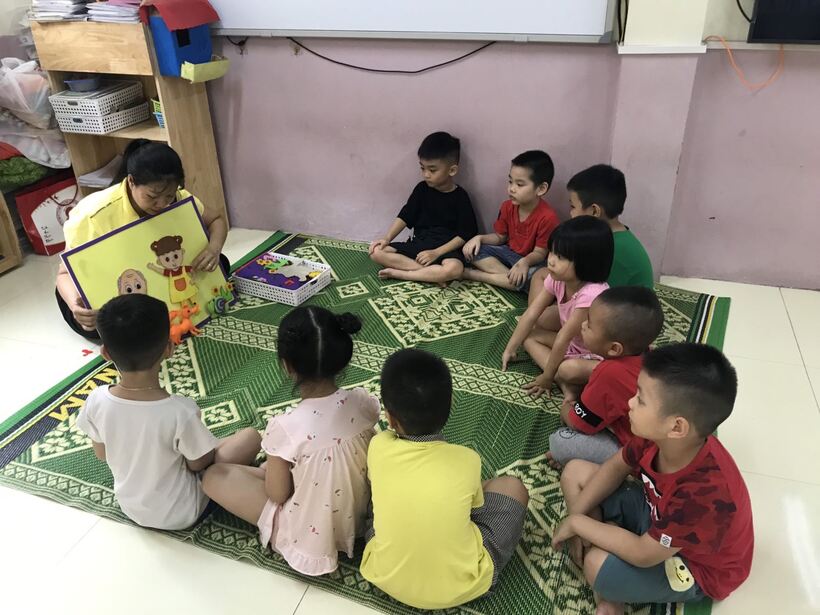 Tuy lớp đông nhất trường nhưng bạn nào cũng được học nội quy quy định của lớp, của các góc chơi, của bạn bè với nhau. Cả lớp có kỷ luật rất tốt, biết lắng nghe cô và các bạn. Các con đến lớp chào cô chào bố mẹ người thân, biết quan tâm chia sẻ với các bạn nhu cầu, ý thích, mong muốn của mình.