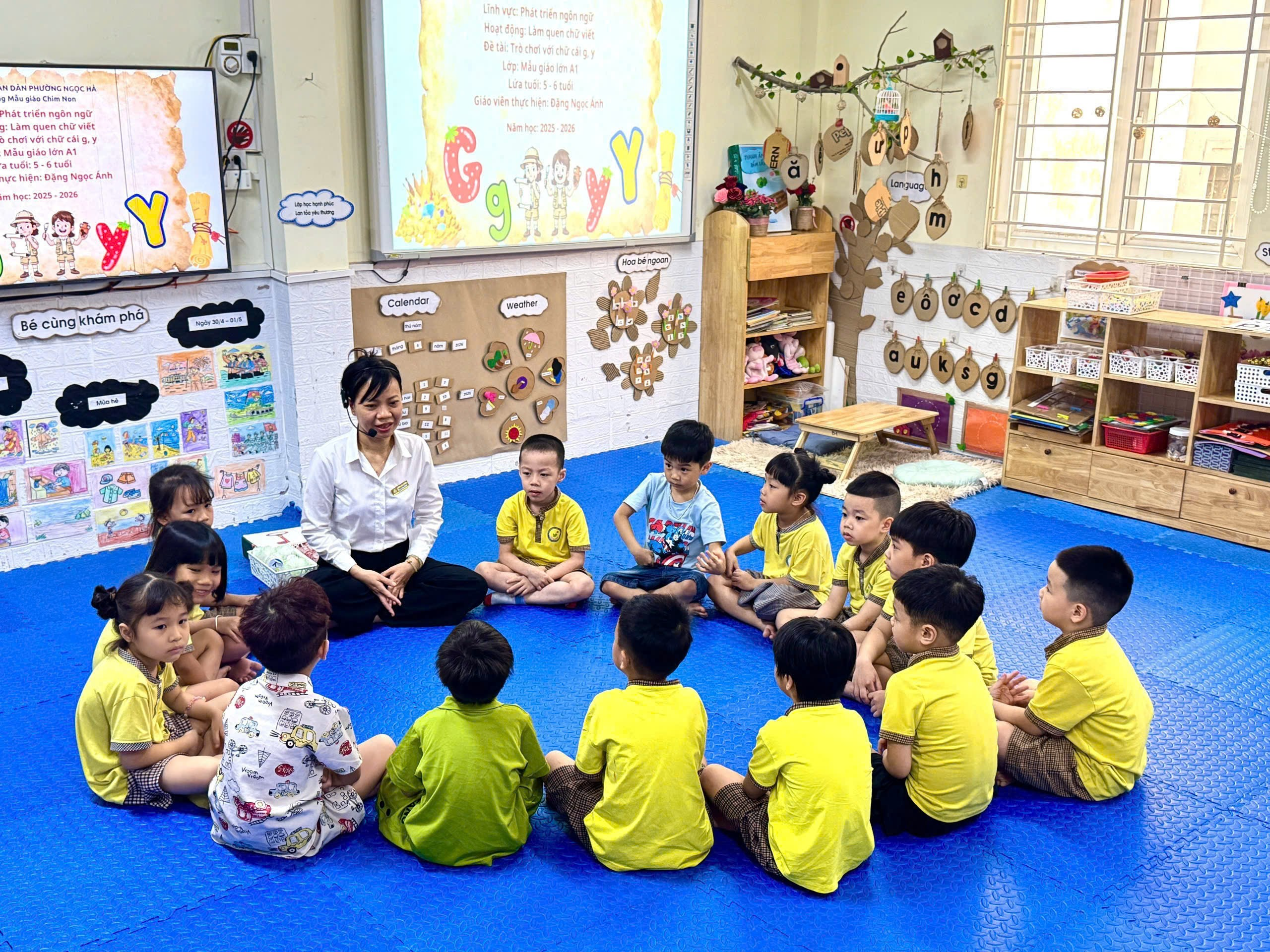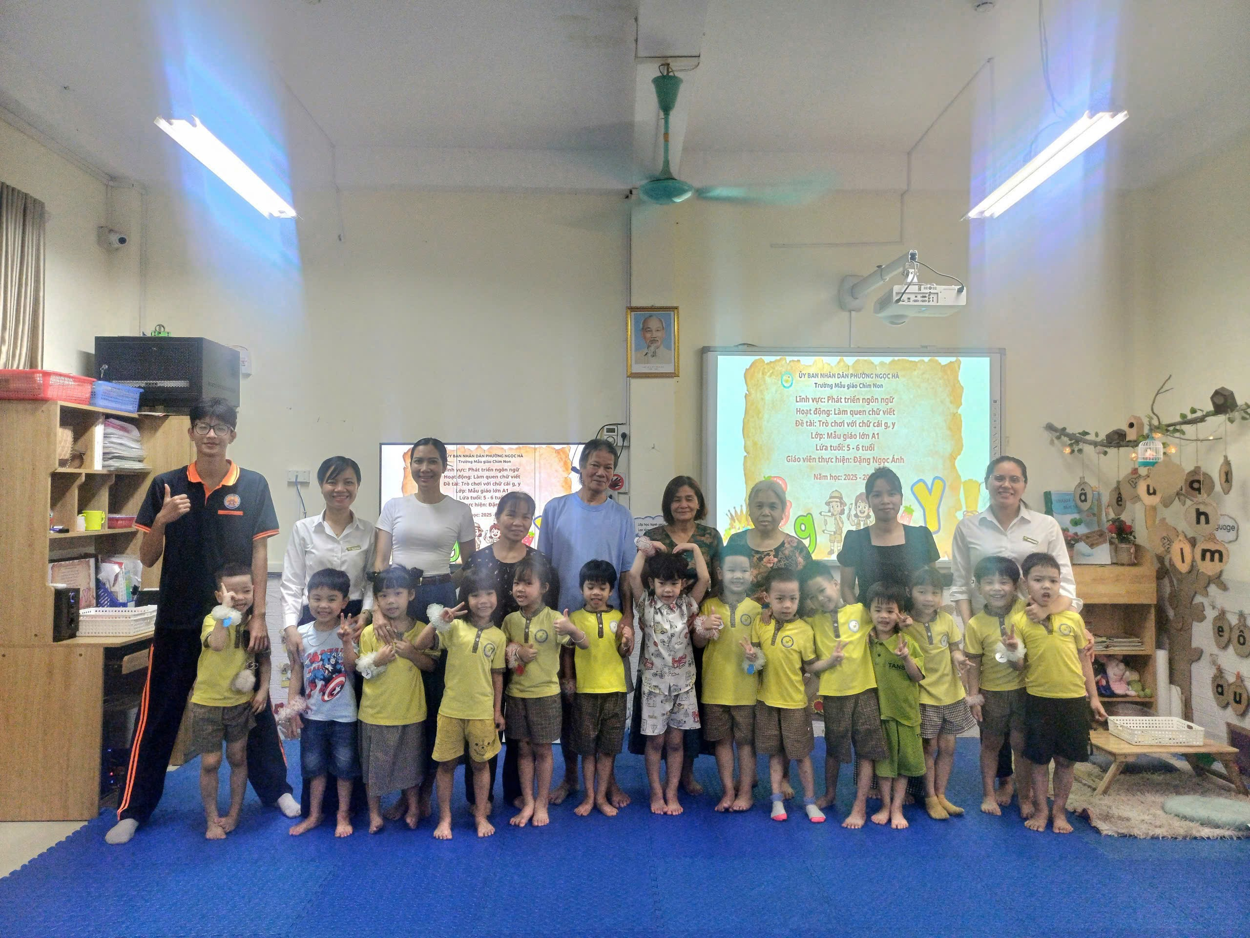 Buổi hoạt động khép lại bằng những nụ cười rạng rỡ. Chữ g và chữ y giờ đây không còn là những ký tự khô khan trên trang giấy, mà đã trở thành những kỷ niệm đẹp trong ký ức của các bé lớp A1.