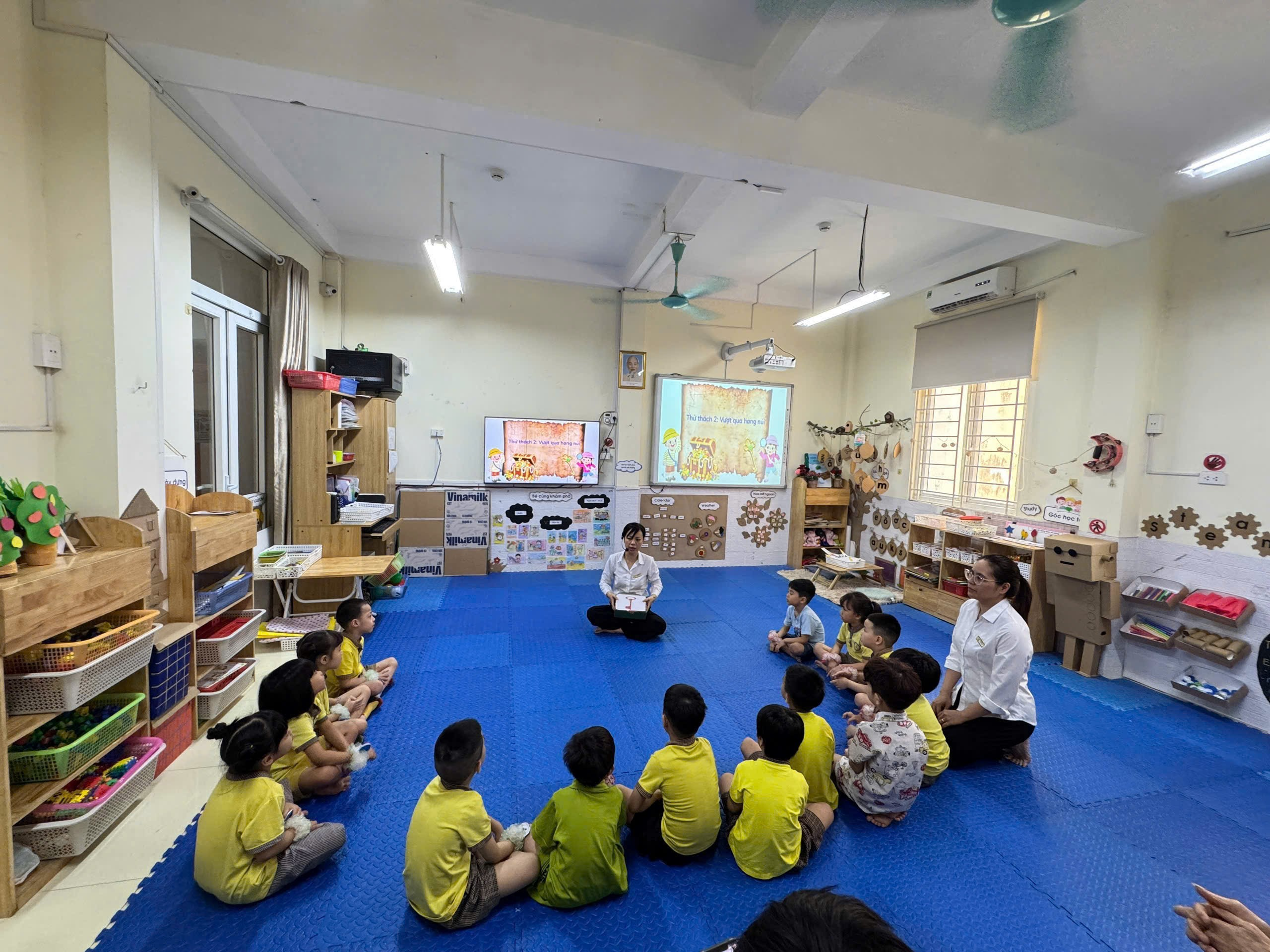 Chiều ngày 9/4/2026, không khí tại lớp Mẫu giáo lớn A1 trở nên rộn ràng và đặc biệt hơn bao giờ hết. Không chỉ có những tiếng cười của các bạn nhỏ, mà còn có sự góp mặt nhiệt tình của các bậc phụ huynh trong hoạt động kết nối: “Trò chơi với chữ cái g, y”. Hoạt động không chỉ mang lại không khí vui tươi mà còn giúp các bé củng cố kỹ năng ngôn ngữ, sẵn sàng tâm thế bước vào lớp 1.