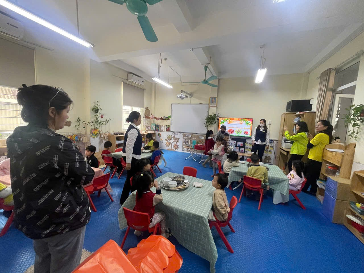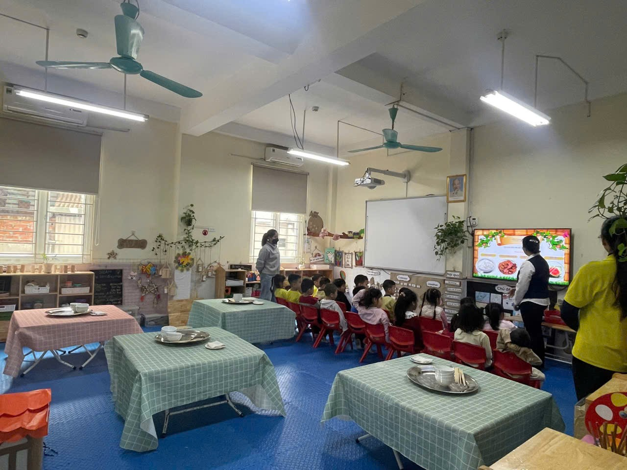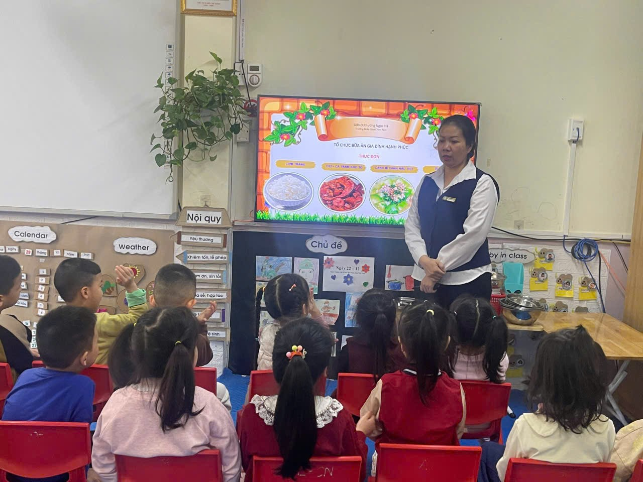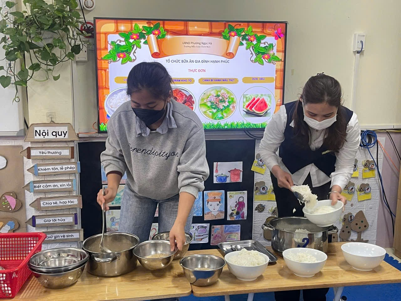 Tại lớp Mẫu giáo lớn A2 trường Mẫu giáo Chim Non, mỗi giờ ăn không chỉ đơn thuần là việc cung cấp dinh dưỡng, mà đã trở thành một "Bữa cơm gia đình" đầy ấm áp và rộn rã tiếng cười. Trong không gian sạch sẽ, thơm nồng mùi thức ăn ngon lành, các bạn nhỏ A2 được hóa thân thành những "chủ nhà tí hon" đầy trách nhiệm. Dưới sự hướng dẫn tận tình của các cô giáo, các con tự tin giúp cô chuẩn bị bàn ăn, sắp xếp bát đũa ngay ngắn và mời bạn, mời cô bằng những lời lễ phép nhất.