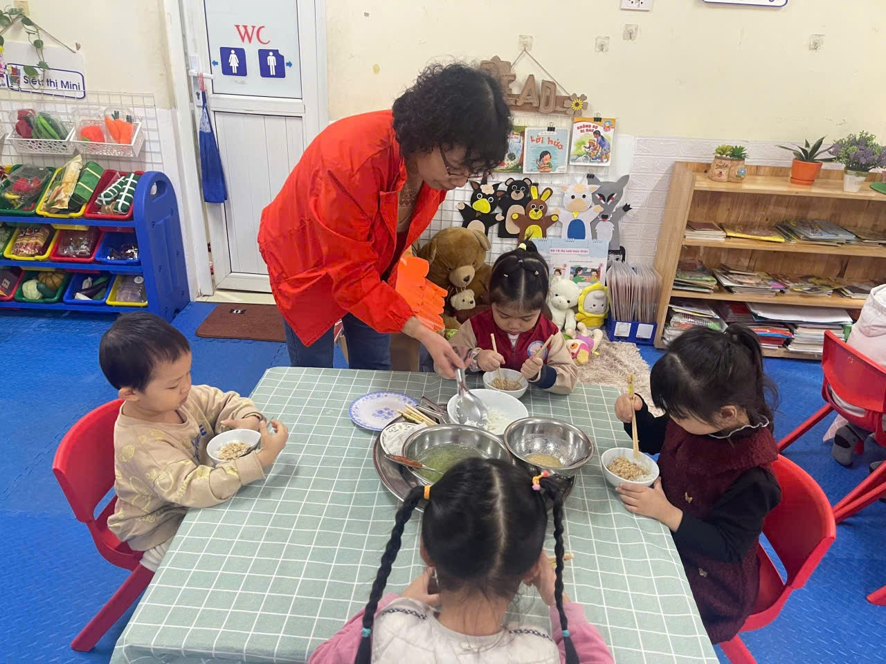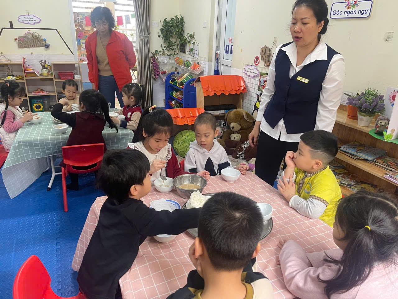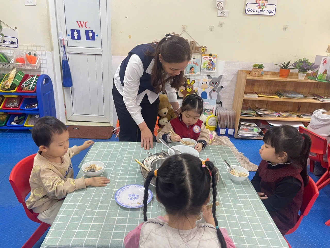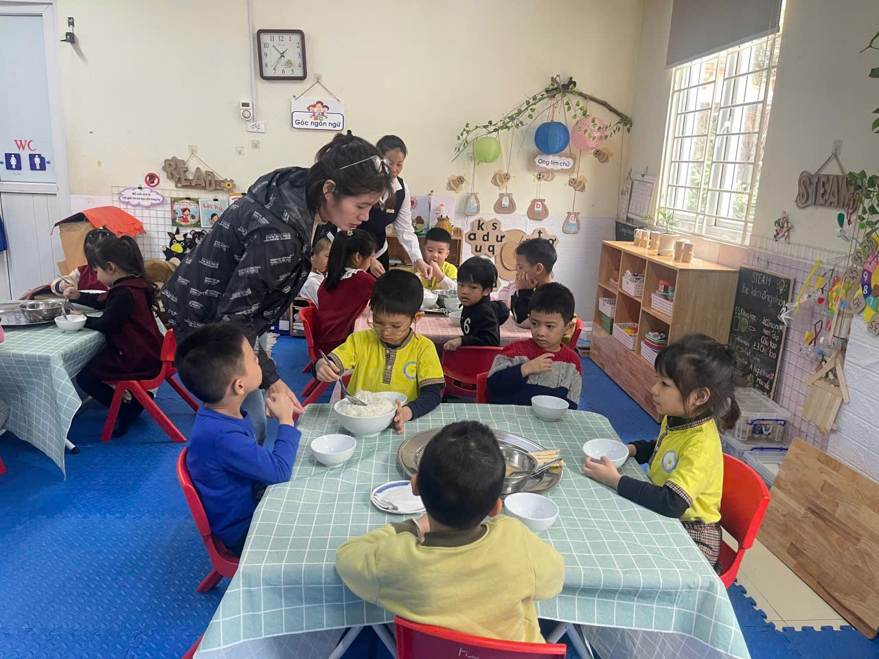 Hình thức “Bữa ăn gia đình” giúp các bé không chỉ ăn ngon miệng hơn mà còn học được kỹ năng sống quan trọng: từ cách lấy thức ăn vừa đủ, sự nhường nhịn, sẻ chia cho đến việc giữ gìn vệ sinh chung. Những ánh mắt háo hức, những câu chuyện thủ thỉ bên bàn ăn đã biến mỗi bữa cơm tại trường Chim Non trở thành một kỷ niệm đẹp, giúp các con phát triển toàn diện cả về thể chất lẫn tâm hồn, sẵn sàng hành trang vững chắc để bước vào lớp 1.